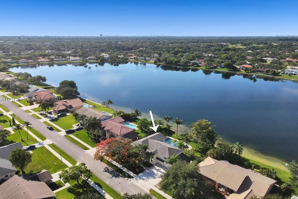 Stunning 5 bedroom 4 full bathroom waterfront Pool home with breath taking panoramic lake views with an oversized garage! Prime location on the most desirable lot in Ridgeview Lake Estates! Interior boasts high ceilings, tile on the first floor, newer flooring on 2nd floor including master bedroom! Large kitchen with custom island that opens to the breakfast nook and family room! Quartzite countertops! One bedroom on the first floor! Huge Master suite on the second floor with two full bathrooms, walk in closets, sliding doors leading out the private patio! Laundry chute on 2nd floor! Top schools including Fox Trail Elementary, Indian Ridge and Western High School! Enjoy outdoor living at its finest in a tropical paradise!