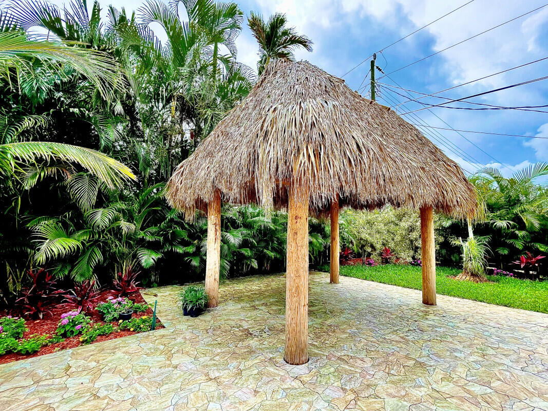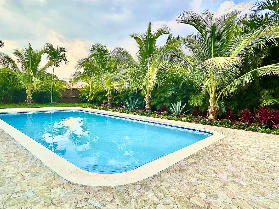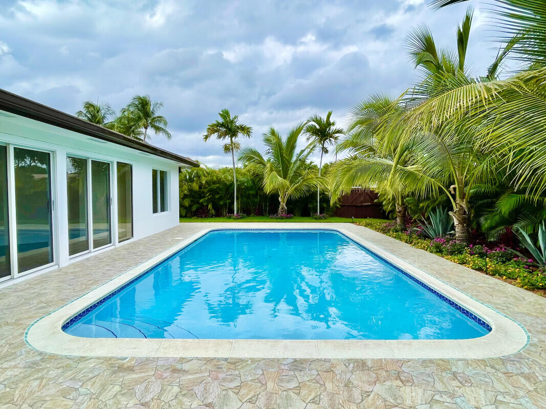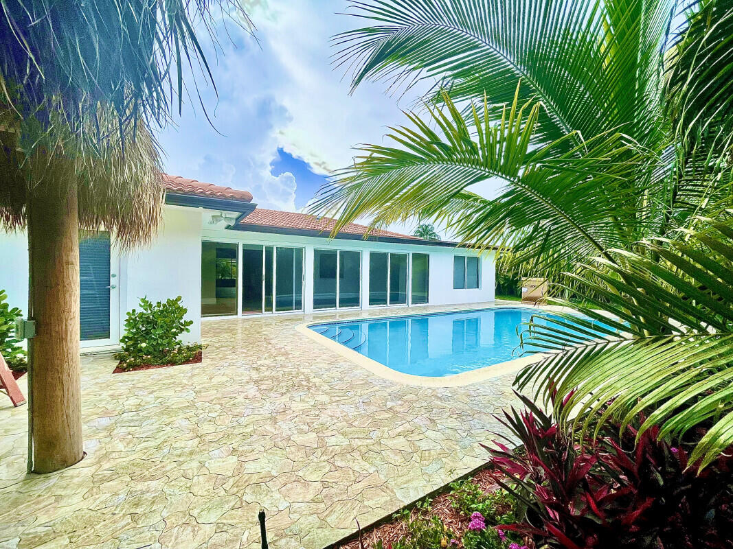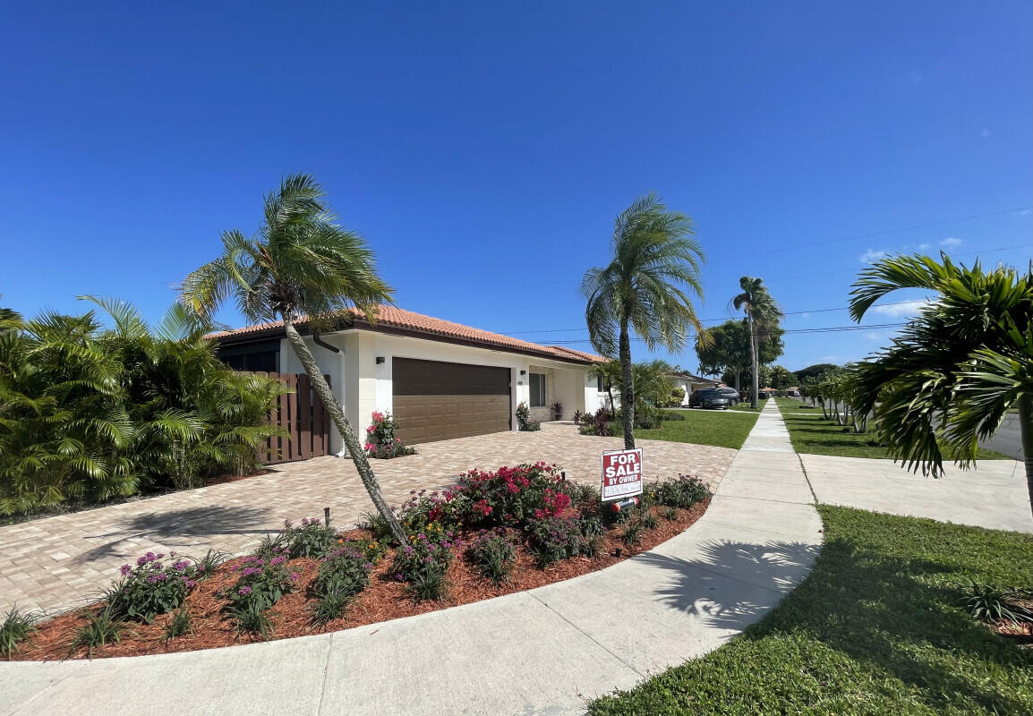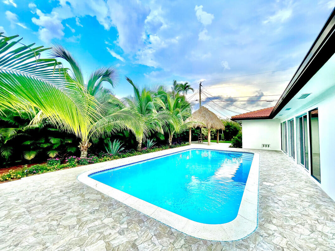 This 2350 sq. ft. under air East Boca pool home is a MUST-SEE for families. Seldom does a completely remodeled home with this many amenities become available in one of the most sought-after neighborhoods in East Boca Raton. WALK TO A-RATED SCHOOLS! This 4/3 1/2 designer's home is the true definition of TURN-KEY with numerous unique options. Boasting a huge and beautifully newly landscaped corner lot with circular driveway, this property has a lush private backyard, with an oversized pool, patio, and tropical tiki hut for entertaining. Allow your guests to enjoy their stay in privacy in the large IN-LAW SUITE with SEPARATE ENTRANCE. Keep your 70 ft. RV or boat (or both!) on site, safely stored in your paved, fenced-in side yard.