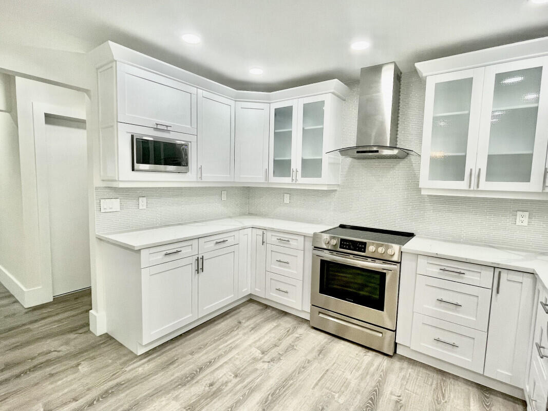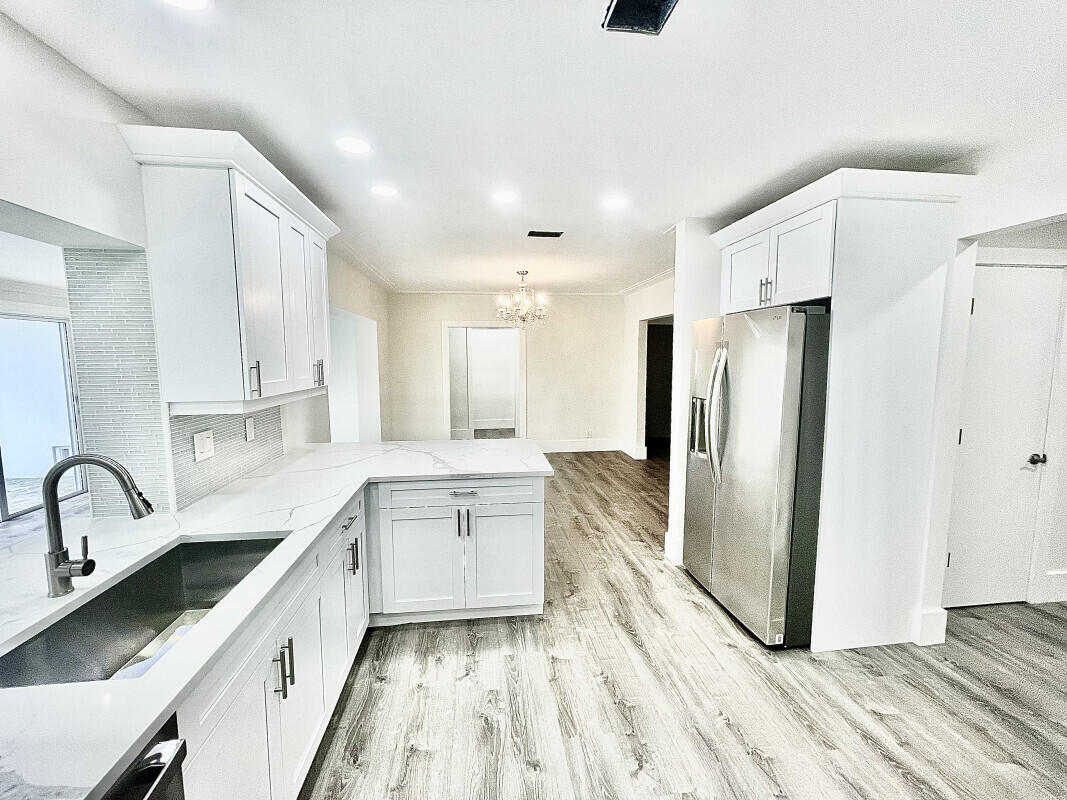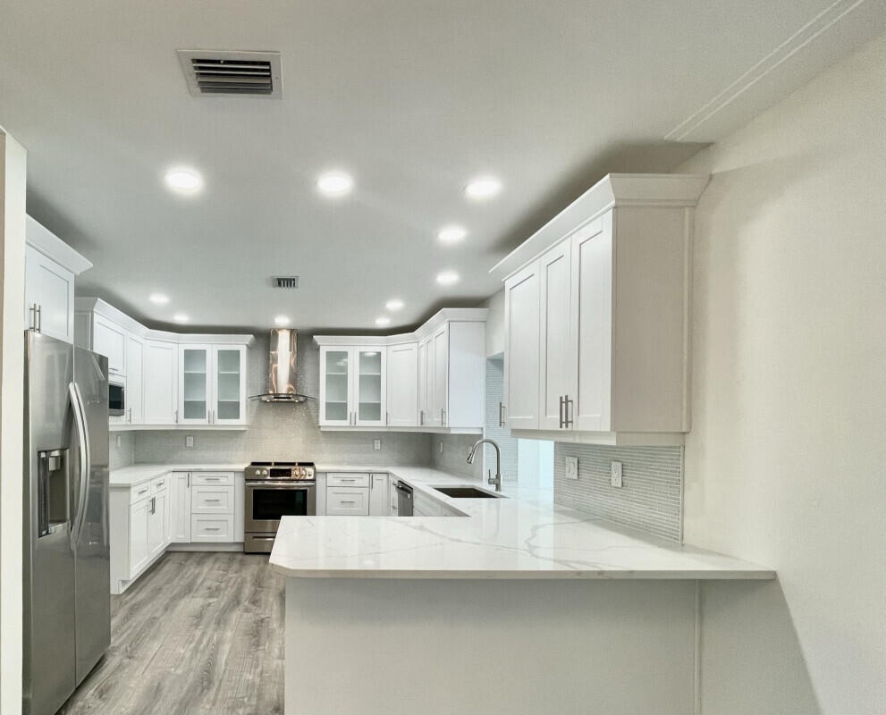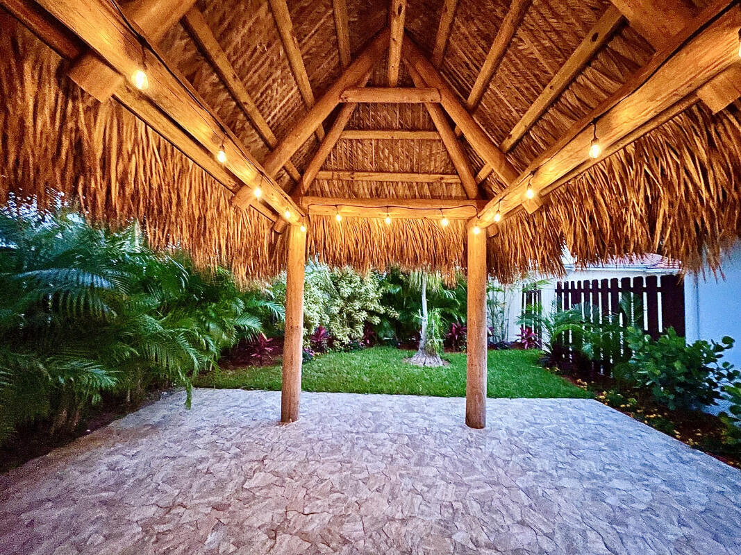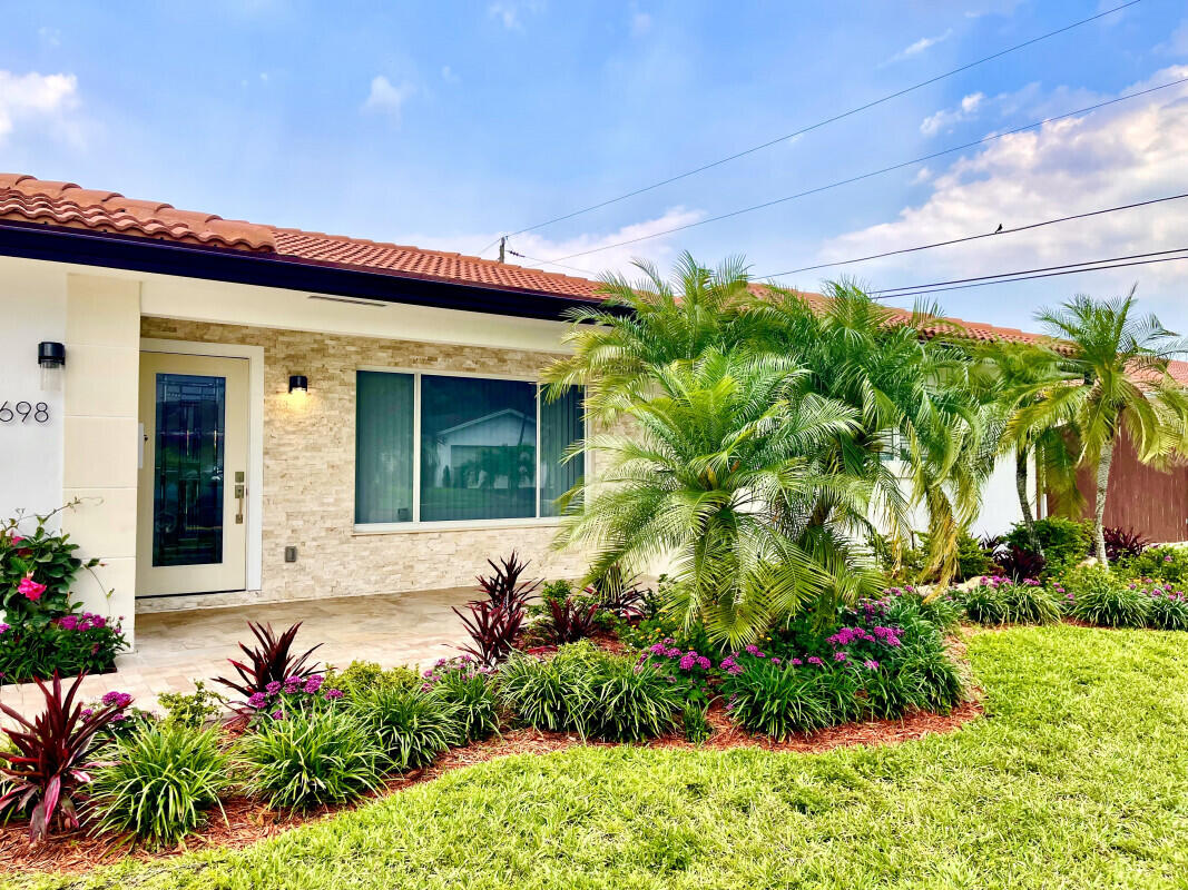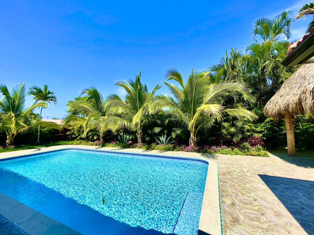 This 2350 sq. ft. under air East Boca pool home is a MUST-SEE for families. Seldom does a completely remodeled home with this many amenities become available in one of the most sought-after neighborhoods in East Boca Raton. WALK TO A-RATED SCHOOLS! This 4/3 1/2 designer's home is the true definition of TURN-KEY with numerous unique options. Boasting a huge and beautifully newly landscaped corner lot with circular driveway, this property has a lush private backyard, with an oversized pool, patio, and tropical tiki hut for entertaining. Allow your guests to enjoy their stay in privacy in the large IN-LAW SUITE with SEPARATE ENTRANCE. Keep your 70 ft. RV or boat (or both!) on site, safely stored in your paved, fenced-in side yard.