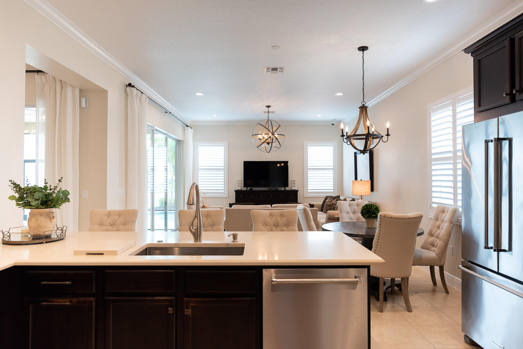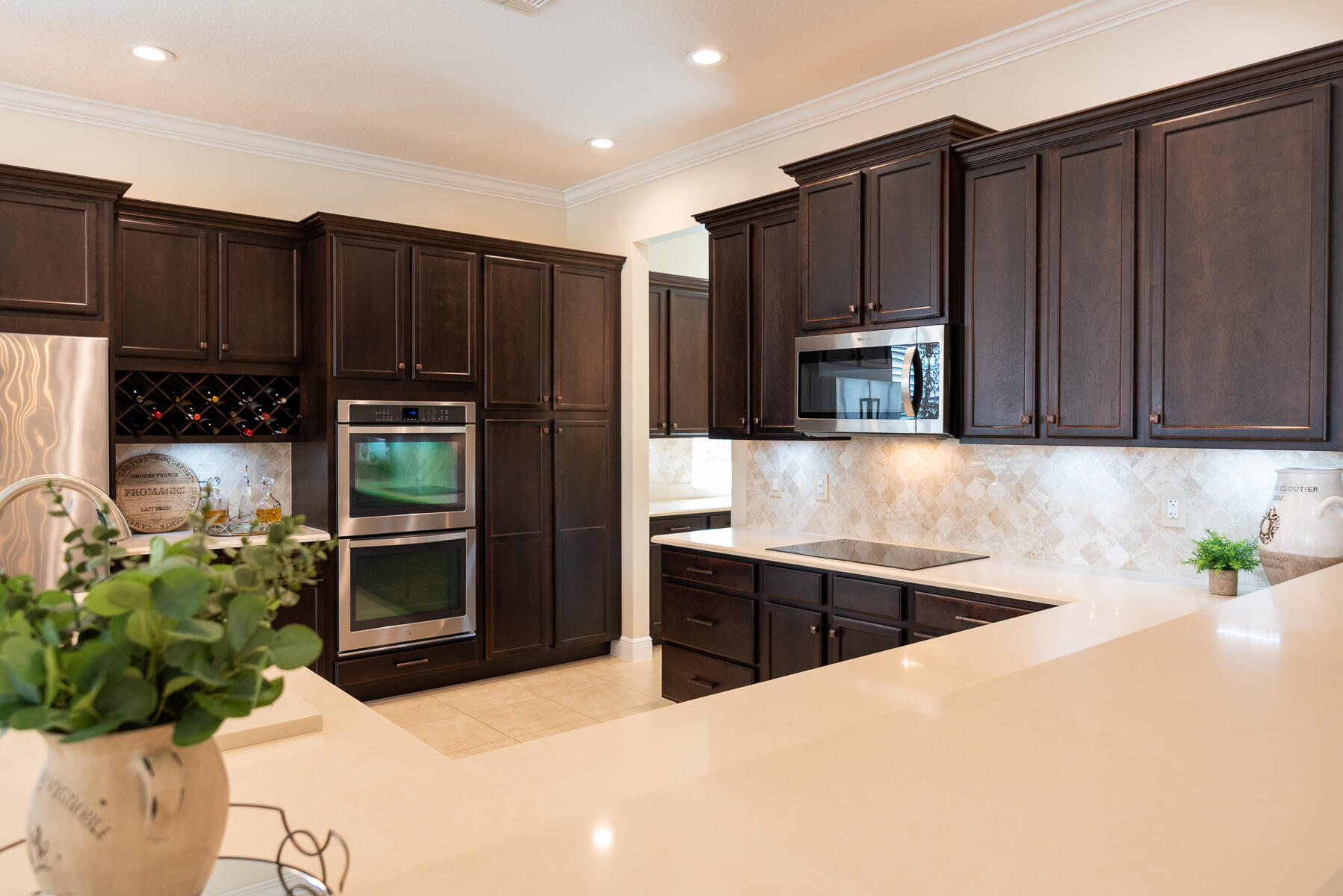 RARE OPPORTUNITY! This stunning pool home is one of only five properties in the community with lake views in the front AND back. With 4 bedrooms, 3 bathrooms, 3 car garage, this single-story home carries exceptional finishes throughout. This home features a large, renovated chef's kitchen with quartz countertops and marble backsplash and is open to the living room and family room. The large dining room, with butler's pantry, is perfect for entertaining. The updated saltwater pool features new travertine tile throughout the lanai and pool deck areas, new glass pool tile and all new pool equipment. The 2-car garage features Racedeck Snaplock flooring and the 1-car garage is insulated with AC.