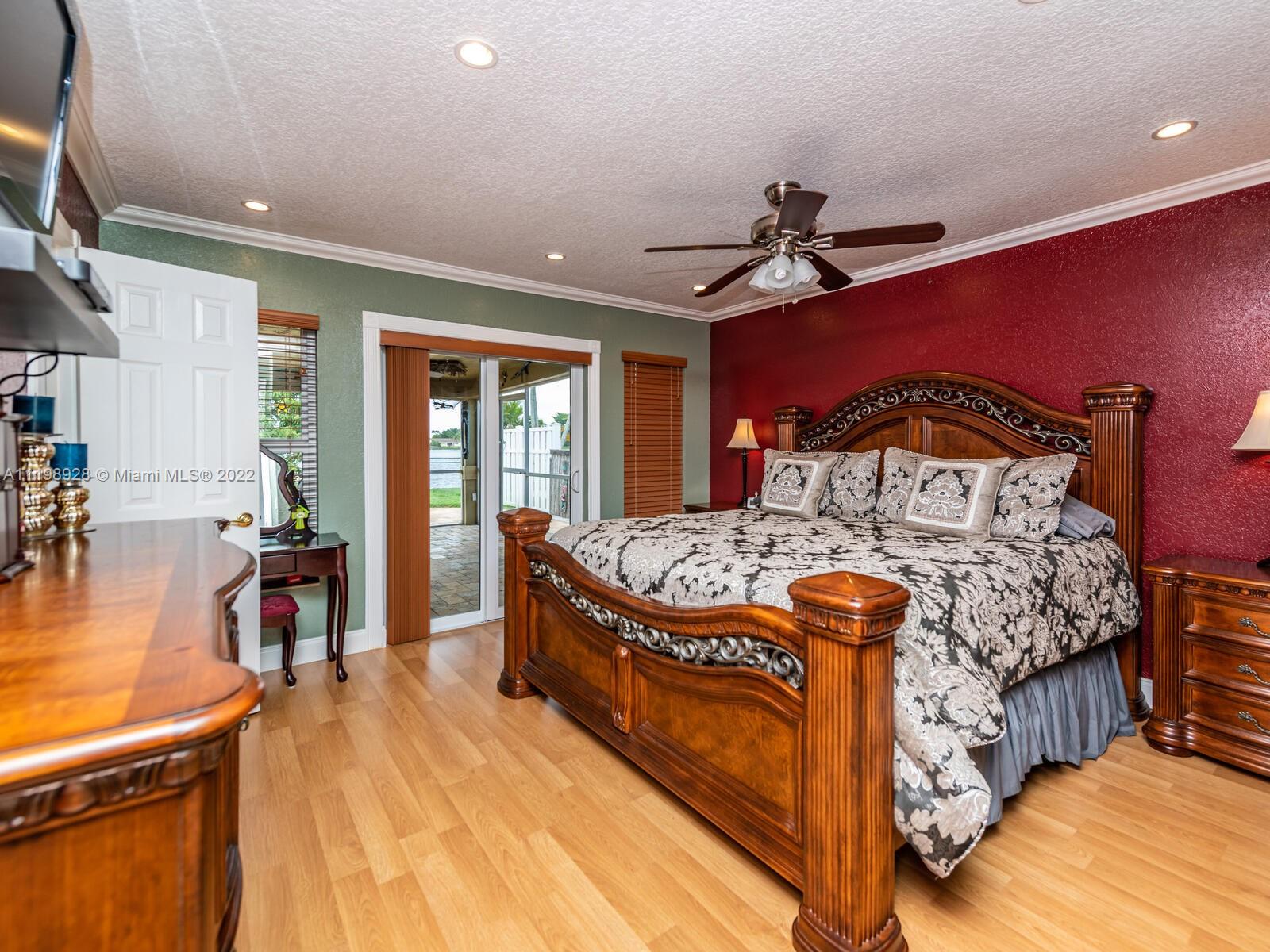 Indulgent tropical paradise from the moment you step out of the back doors leading to an enclosed & covered 20x80' travertine patio, just outside that you will find the outdoor kitchen & shed. The yard has a mature mango tree, sprawling palms, & massive lake view with 80' water frontage. Extended yard leads to a custom dock with pavilion & sunshade. The home has been immaculately maintained & extensively updated with all impact windows and doors (including the garage) & a newly upgraded kitchen, including spotless Samsung appliances & a/c unit all about a year and 1/2 new. You'll enjoy the customs closets, updated guest bath, & high end laminate flooring in most of the main area. You can see the pride in ownership reflected throughout this highly sought after lakefront home in Sunrise!!!