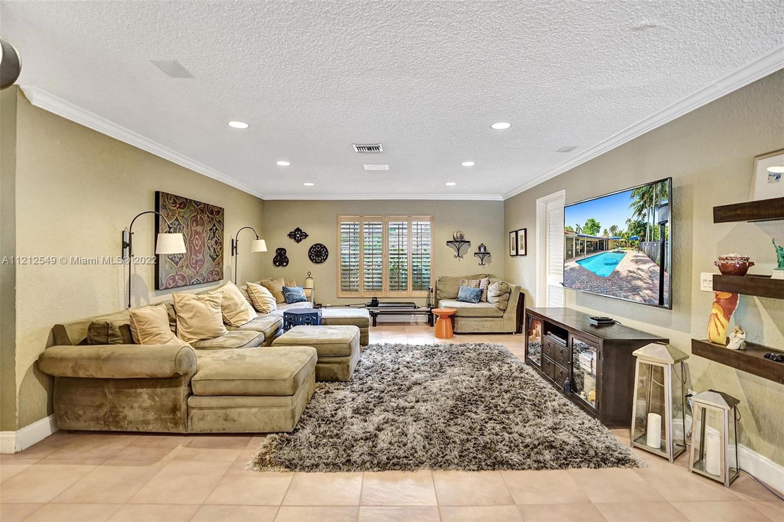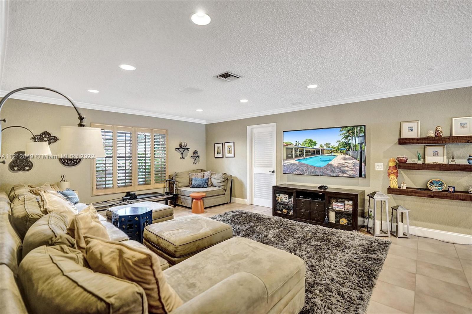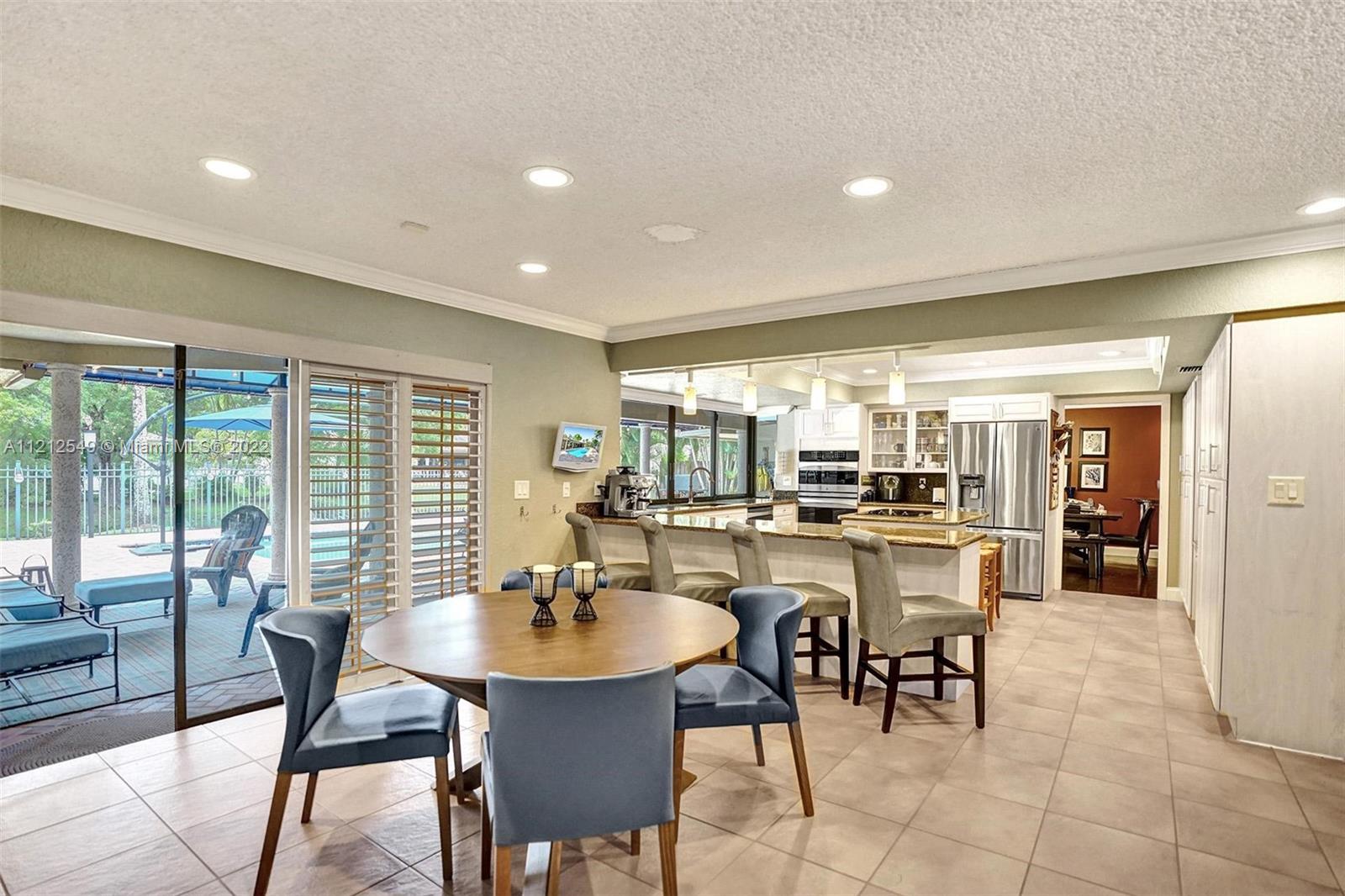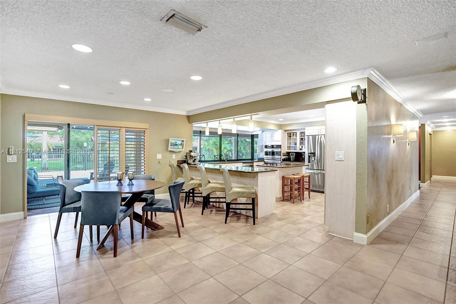 Rarely available - This immaculate and remodeled 4-bedroom 3-bathroom waterfront/pool single family home is the Largest custom-built 1 story home in New Orleans Villas Estates - no homeowners assoc! Features include 350 sq ft Billiard room with mahogany cabinetry & custom-built wet bar for entertaining off living room; expansive Gourmet kitchen with kitchen window overlooking pool deck, stovetop island, lighted breakfast bar and newer appliances; 2 large dining rooms & family room; custom plantation shutters, huge inside laundry rm! Garage-Tek system; outdoor living at its finest with resort-style southern exposure pool with brick paver patio flanked by eight 20-foot coconut palm trees along an expansive canal front with custom designed commercial-grade shade awning.