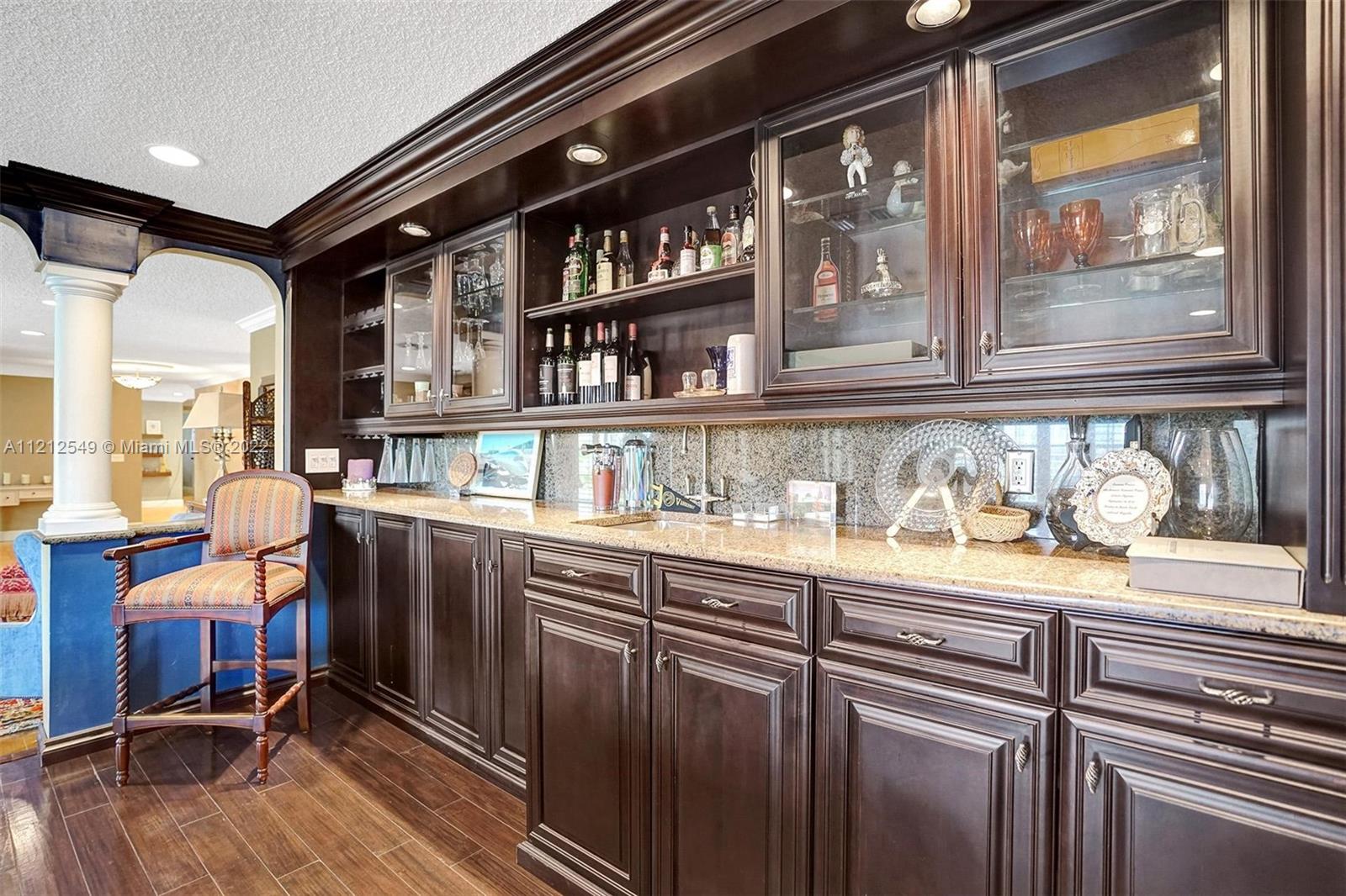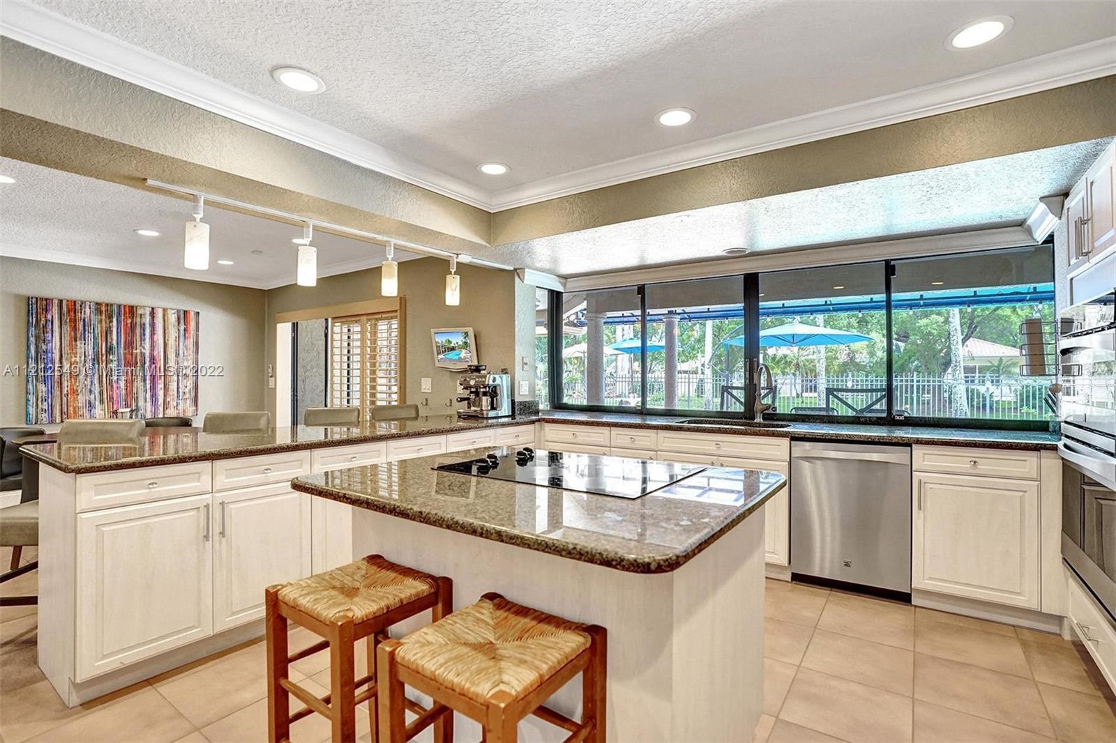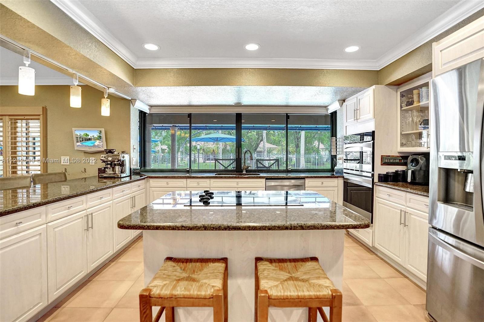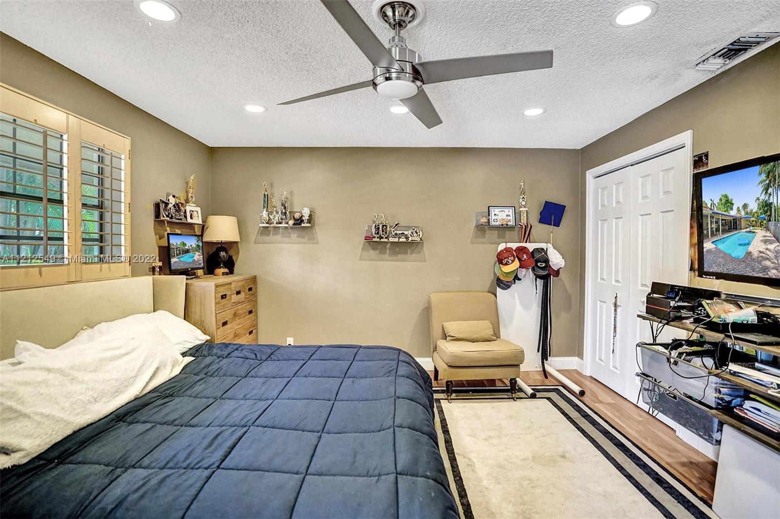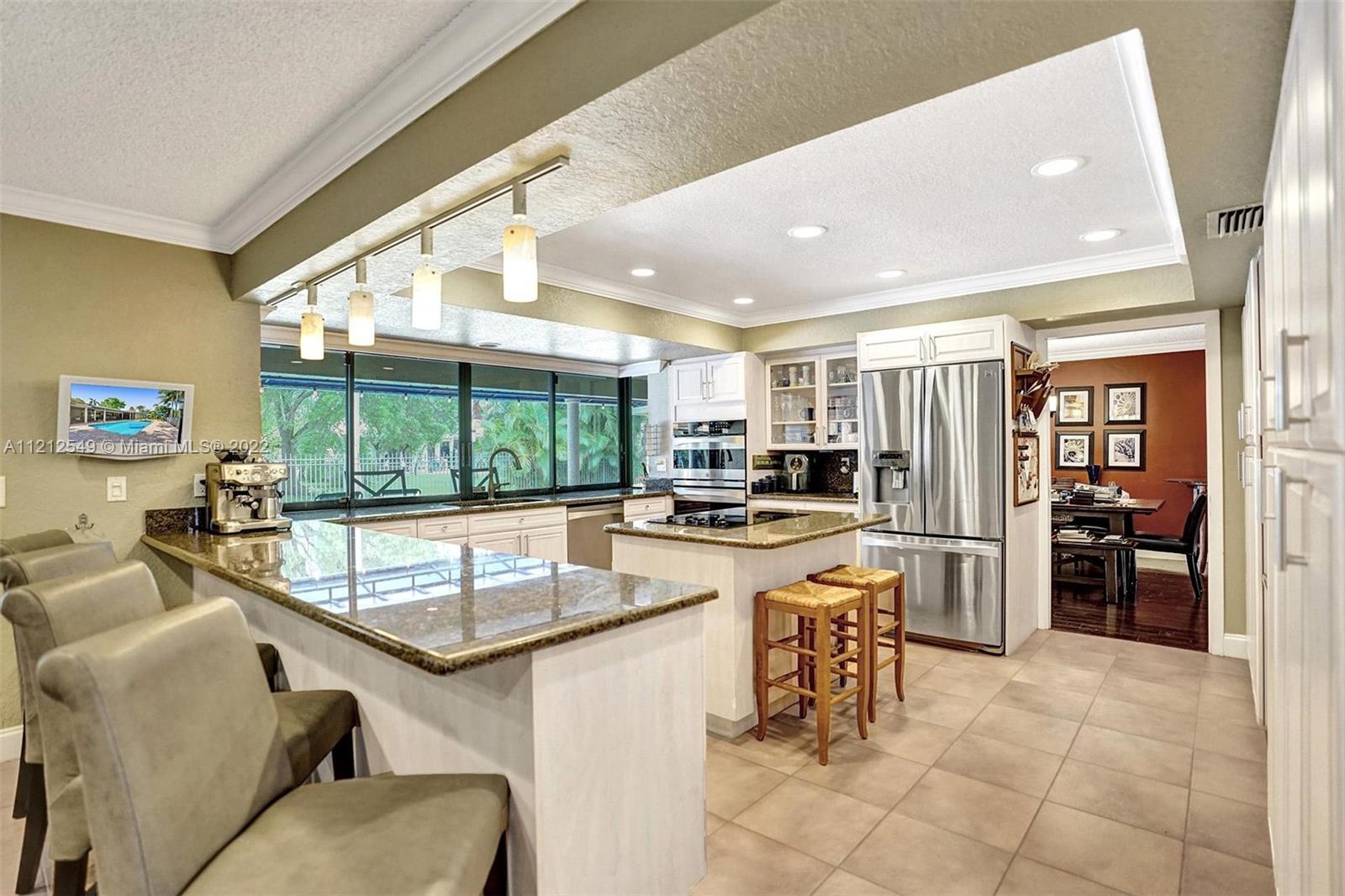 Rarely available - This immaculate and remodeled 4-bedroom 3-bathroom waterfront/pool single family home is the Largest custom-built 1 story home in New Orleans Villas Estates - no homeowners assoc! Features include 350 sq ft Billiard room with mahogany cabinetry & custom-built wet bar for entertaining off living room; expansive Gourmet kitchen with kitchen window overlooking pool deck, stovetop island, lighted breakfast bar and newer appliances; 2 large dining rooms & family room; custom plantation shutters, huge inside laundry rm! Garage-Tek system; outdoor living at its finest with resort-style southern exposure pool with brick paver patio flanked by eight 20-foot coconut palm trees along an expansive canal front with custom designed commercial-grade shade awning.
