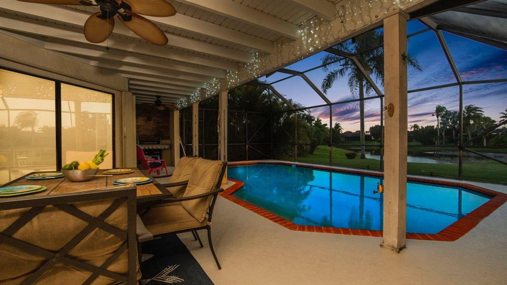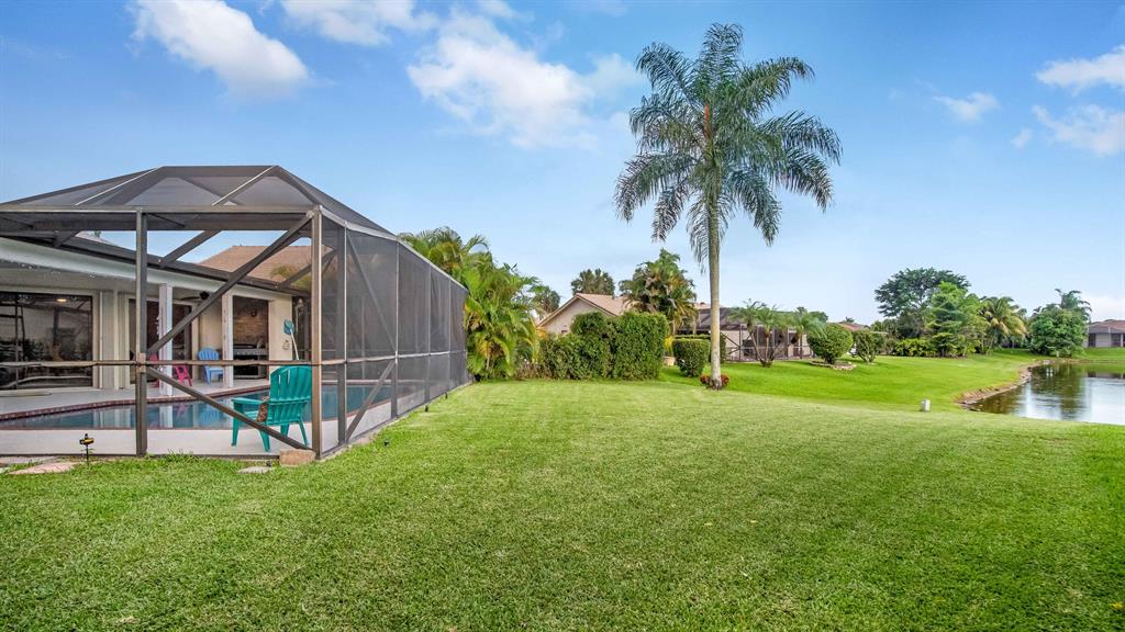 Fully updated home on oversized premium lot with A-rated schools in the desirable gated community of Boca Greens! Immaculate all age, golf course development with NO mandatory membership fees. Enjoy the beautiful sunsets that glisten on the lake from your private oversized screened patio and pool area. Covered patio area is great for entertaining family and friends. This spacious one-story home has updated kitchen cabinets with granite countertops & s/s appliances. Fully remodeled baths, contemporary decor and closets galore. Split bedroom plan, 2 car garage & extra-long driveway. are just a few of the many features this home has. Accordion hurricane shutters on windows. This home is located close to the entrance of the community and is walking distance to houses of worship and shopping.