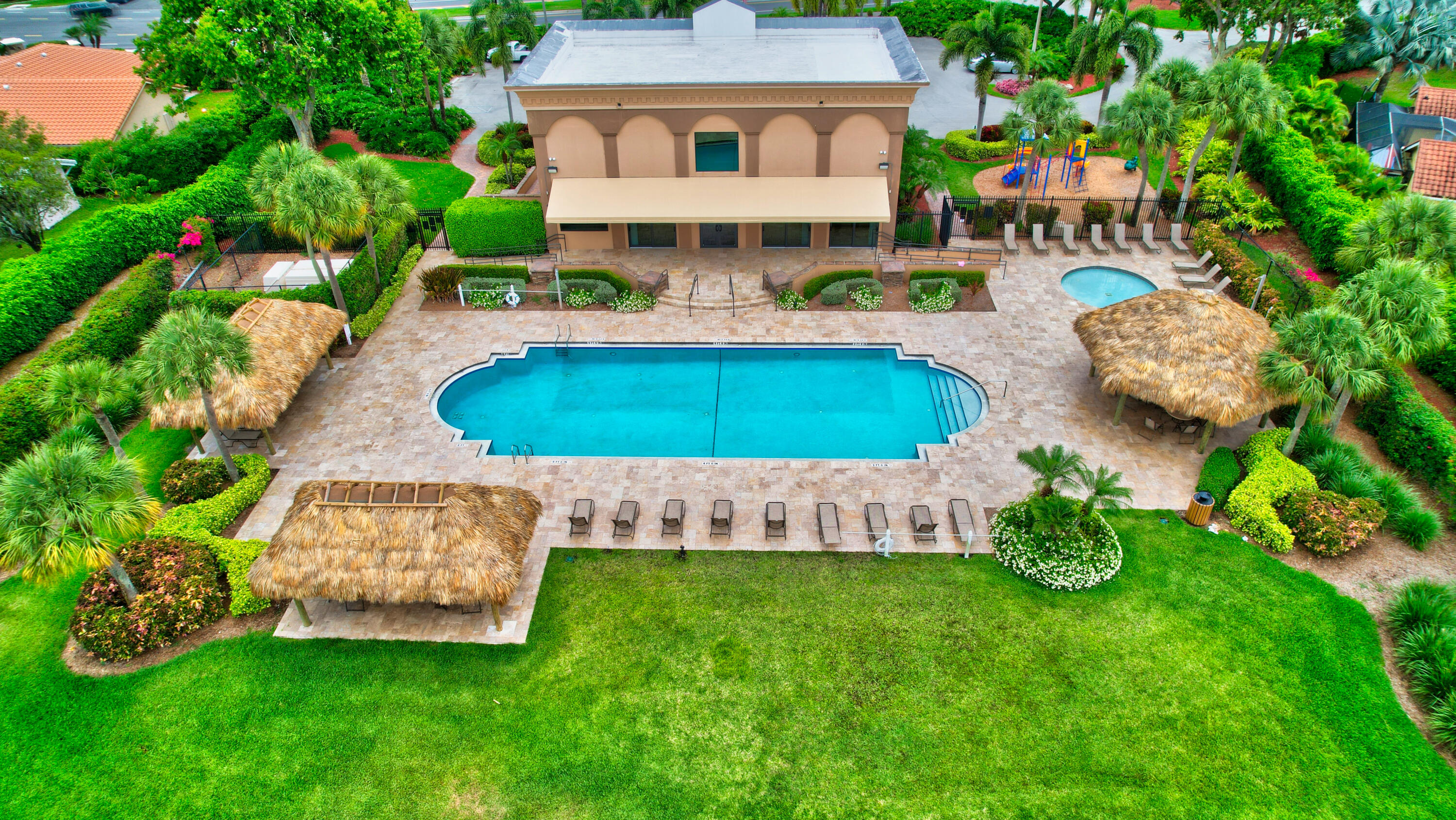 $75K PRICE IMPROVEMENT! OVER 3500 SQ FT in this spacious 5 BR+LOFT +HUGE BONUS ROOM w/POOL located on long LAKE lot. Circular Driveway leading to 3 car garage.. Stunning curb appeal! Large Screened in patio w/summer kitchen for relaxing by the pool! High volume ceilings. Wood floors in living areas. Primary suite, and guest br/den downstairs. 3 bedrooms, loft&bonus room upstairs. Cabana bath. Sprawling kitchen/family room has all of the bells &whistles including an additional desk area &walk in pantry plus under stair storage. AC's approx 5 yrs new. Panel shutters for windows. 3rd garage is used as office and has A/C. Best ''A'' rated schools nearby of Waters Edge Elementary,Loggers Run Middle&West Boca HS. Boca Winds features a Community pool, clubhouse, tennis, playground. Low HOA