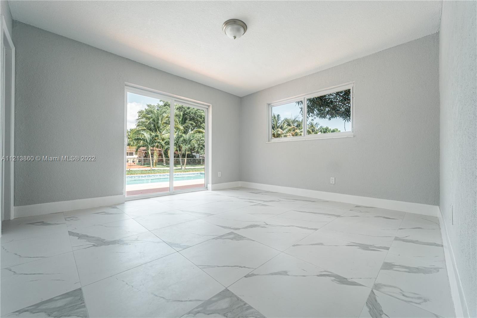 Price adjustment to Sell. Beautiful corner lot property with POOL ready to move in. Three bedrooms and two baths, modern porcelain floor. There are many upgrades; the new kitchen features custom cabinets, a quartz countertop, and SS appliances. New Impact doors and windows and a new High-efficiency A/C unit. New roof, fully remodeled baths.The back yard designed for complete enjoyment with a beautiful pool, sprinklers system with new pomp, different tropical trees, and fresh grass. It is conveniently located near the Beach, with Great Dining, Hard Rock Guitar, Hard Rock Stadium and entertainment.