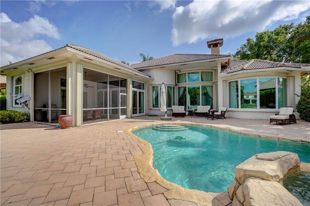 5 Bedroom, 4 1/2 Bath Pool & Waterfront Home. 5th bedroom has been converted to an office. Every bedroom has its own bathroom. Heron Bay - with a second gate for The Falls. 3 car garage. Circular driveway. Wood floors. Impact windows and doors. Screened area and open pool with amazing rock waterfall. Landscape lighting. Working fireplace. Central Vacuum. Mosquito mister in entire backyard. New water heater. High solid core doors. Crown molding. Gated community with 2 clubhouses, community pool, tennis, basketball, large fitness center, plus much more.