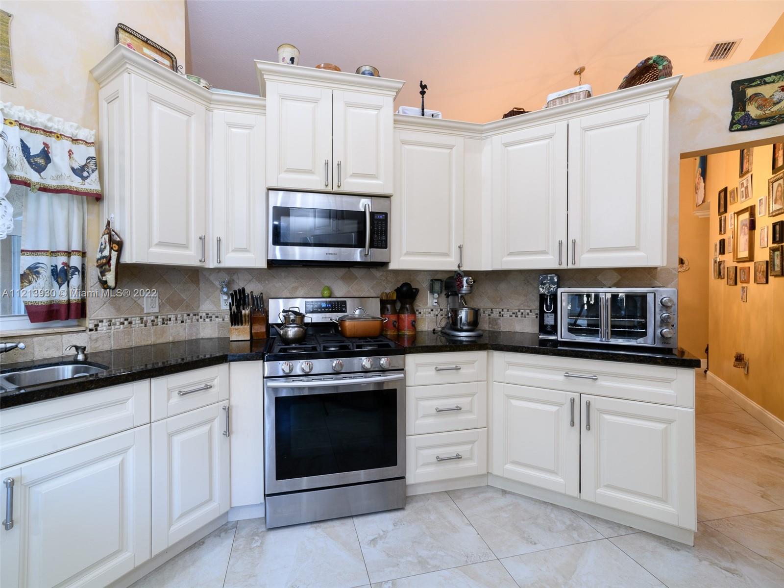 Beautiful 3/2+office over 1600 total sq ft in SAWGRASS ESTATES! Featuring open floor plan, vaulted ceilings, tile in main areas and nice size bedrooms w/porcelain wood plank floors. Kitchen updated in 2016 with beautiful white soft close cabinets & drawers, granite countertops, luxury SS appliances, gas range, & cozy breakfast nook area. Large master suite-updated bathroom w/double marble top sinks & large walk in custom closet. Large walk-in laundry room. Garage partially converted into office. Impact windows/doors(2016) Roof(2018)AC & air ducts(2015)Electric panel 200-amps(2015).Expansive private backyard w/shed & bonus canopy providing extra shaded area for entertaining. Double gated fence to park your boat, RV! Low HOA w/community pool. Minutes from highways, parks, shopping and more!