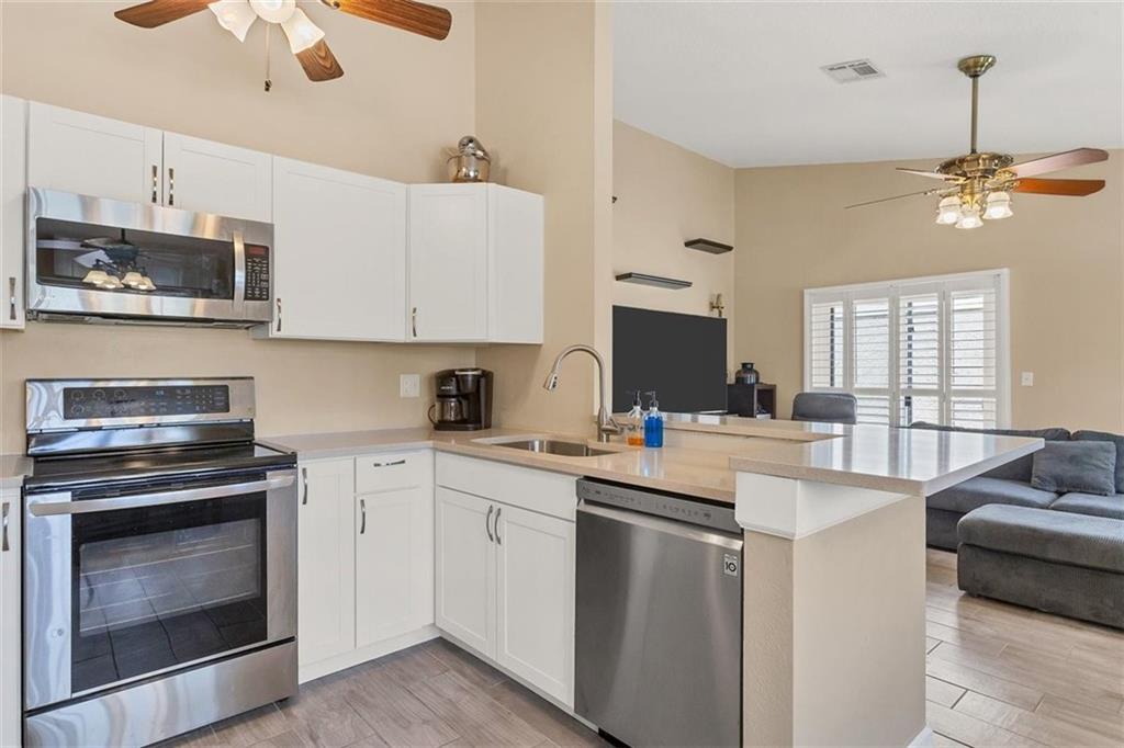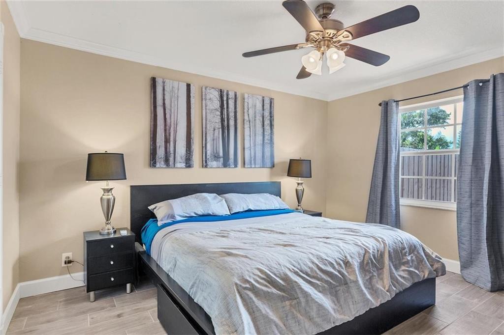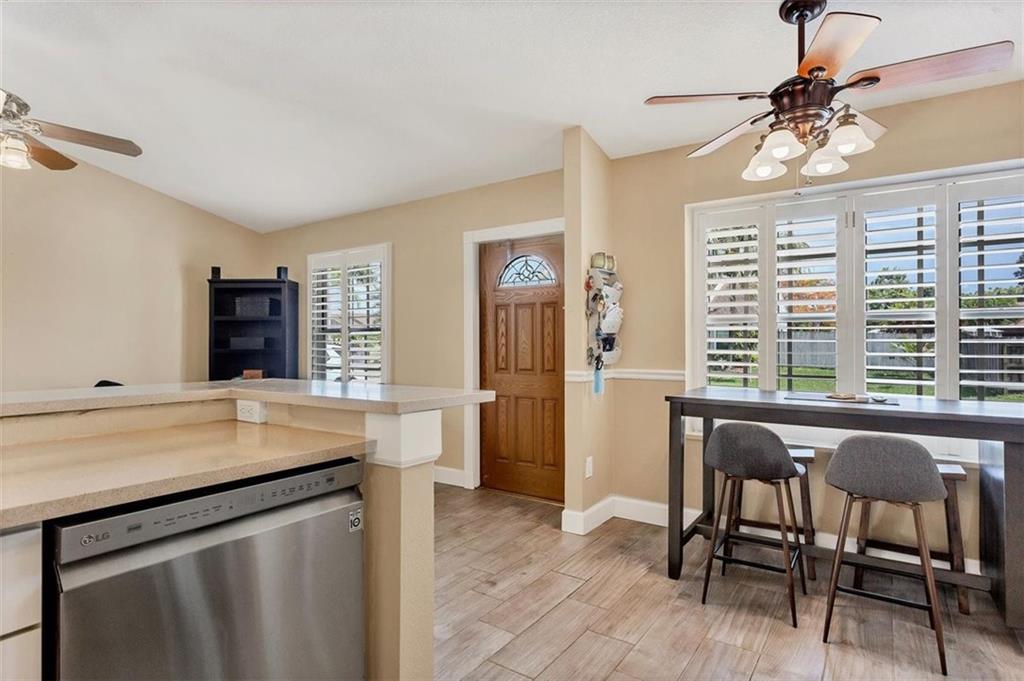 Move right in to this lovely one story 3/2 home in Tudor Woods. Open floor plan. The home has many interior custom features including LG stainless steel kitchen appliances, plantation shutters throughout, crown molding, and gorgeous tile flooring. Complete storm protection with Impact Windows and wired for a generator. Low Insurance cost and minimal HOA.
