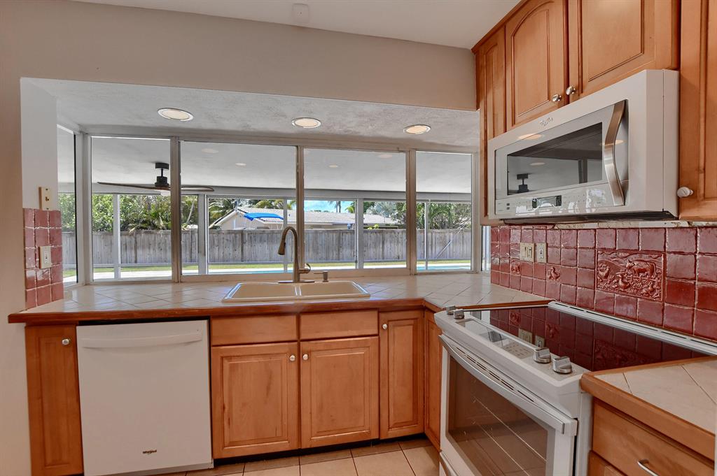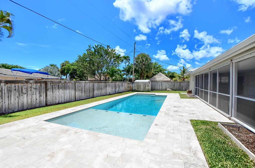 Immaculate ready to move in 3/2 pool home in East Boca on a large corner lot. You'll love the large, fenced backyard, huge screened in covered patio that leads out to the inviting custom-designed saltwater pool with in-pool sundeck and surrounded by a travertine deck. Additionally, this home offers an electric fireplace on the stack stone wall, light and bright living areas, wood-style flooring, brick paved slab on the side of the house ready for a boat or other recreational vehicle. Excellent location, A-rated schools in the Addison Mizner School District, biking distance to beaches, downtown, shopping and coming soon- Brightline train station.