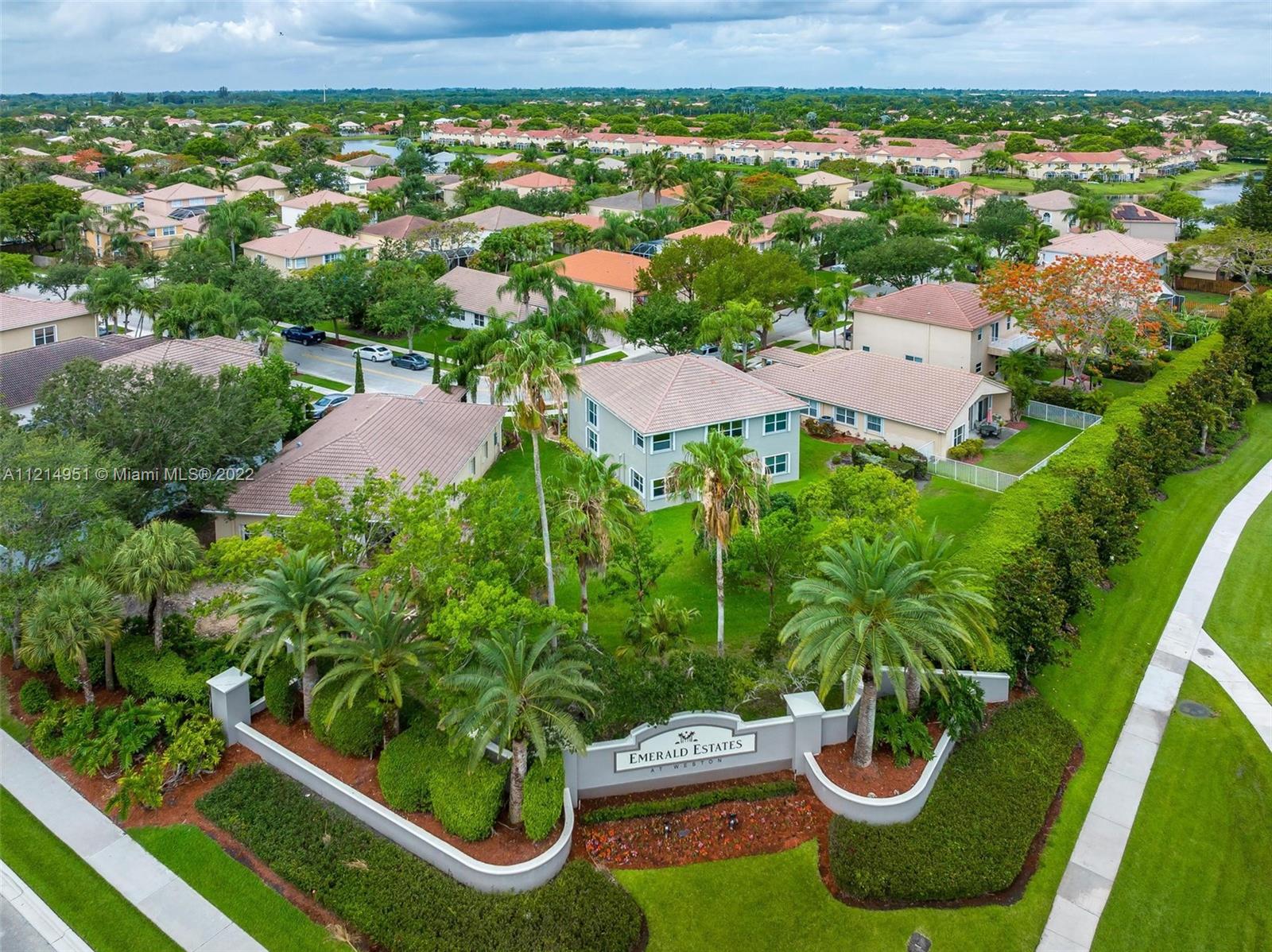 Beautiful and functional Jade model. Immaculately maintained and tastefully remodeled. Lot has room for a pool. Bedroom and full bathroom on the ground floor. Tile on the first floor and laminated on the second floor. Bathrooms and kitchen are fully remodeled, Kitchen Aid stainless steel appliances. Great window treatment, privacy film. Stair metal hand-railing. Garage with storage cabinets. Bonus: Mango tree in back yard. The HOA fee includes 24 hours guarded gatehouse, lot mowing and irrigation, landscaping, monitored alarm system, cable TV (HDT package with BlueStream Cable) and amenities: Pool, Gym and Playground. Emerald Estate Park is just next to the community with basket and tennis court, picnic shelters, etc. Open House Friday 3 from 3-5 PM, Saturday 4 from 11 AM - 1:00 PM