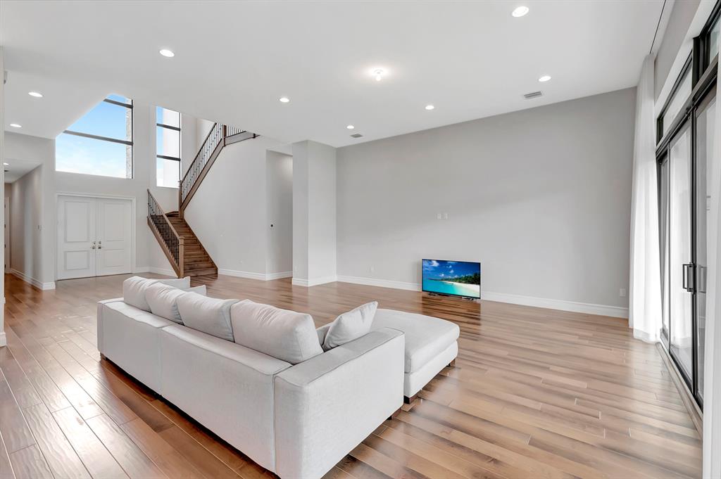 The Contemporary Riverside floorplan is one of the most sought after homes within Boca Bridges. South-facing private lot. 5 bedrooms, 6.1 baths, 4-car garage, loft, retreat, club room, upstairs owner's suite with large covered balcony, great room, den & very spacious backyard that could easily accommodate a pool. From the foyer throughout the living areas & upstairs to the bedrooms is rich wood flooring. The kitchen has SubZero refrigerator, Wolf gas cooktop & wall ovens, Bosch dishwasher, a steam oven, quartz counters, & farmer's style sink. The club room features a wet bar. All the bedroom closets are fully customized & outfitted. Pre-plumbing & electrical stub-out for future BBQ & a pool. Gas appliances. Impact glass throughout. Water purification system. Close to the Clubhouse