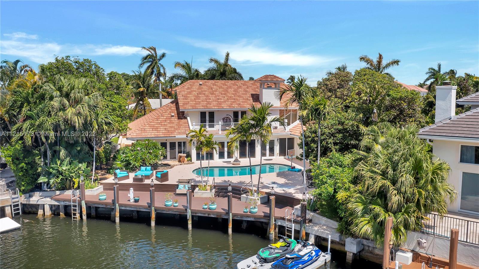 Fantastic, waterfront 4 bdrm, 3.5 bath home in Walkers Cay with direct ocean access. Airy & bright living area with 25-foot, vaulted ceiling and impressive stone fireplace, opens to bar area with french doors out to the patio and pool. Formal dining rm. Beautiful kitchen w/granite countertops, wood cabinetry, stainless steel appliances, eat-in snack bar, breakfast area. 2 bdrms on the first floor including grand master suite w/new porcelain flooring, luxurious bath & adjoining office. 2 additional bdrms upstairs. Newly painted interior/exterior, impact windows/doors, newer roof. 3 car garage. 80 ft frontage w/ wide canal access, new wood dock. Relax & unwind on your spacious patio w/ heated pool, plus Koi pond w/ waterfall. Updated landscaping, new sprinkler system.