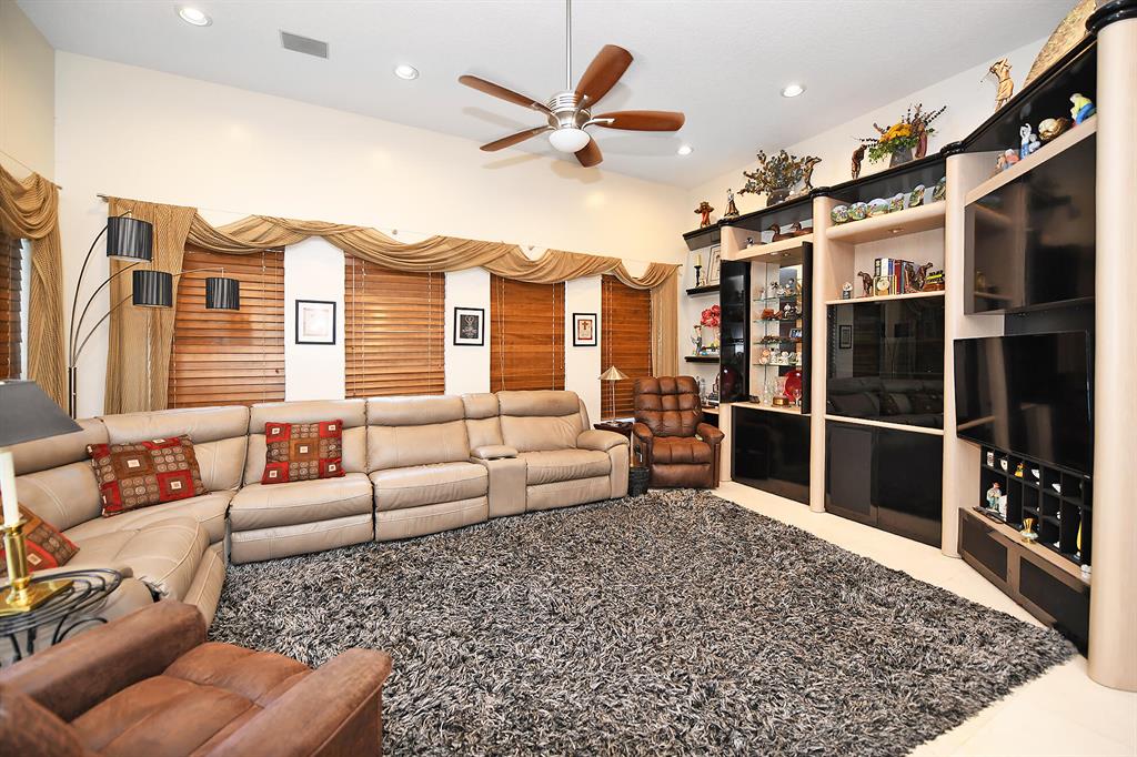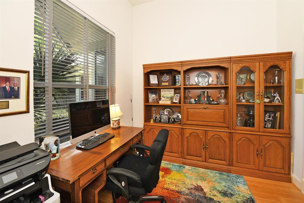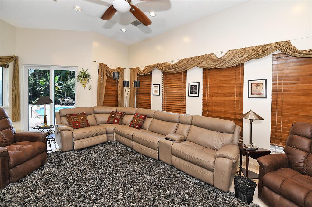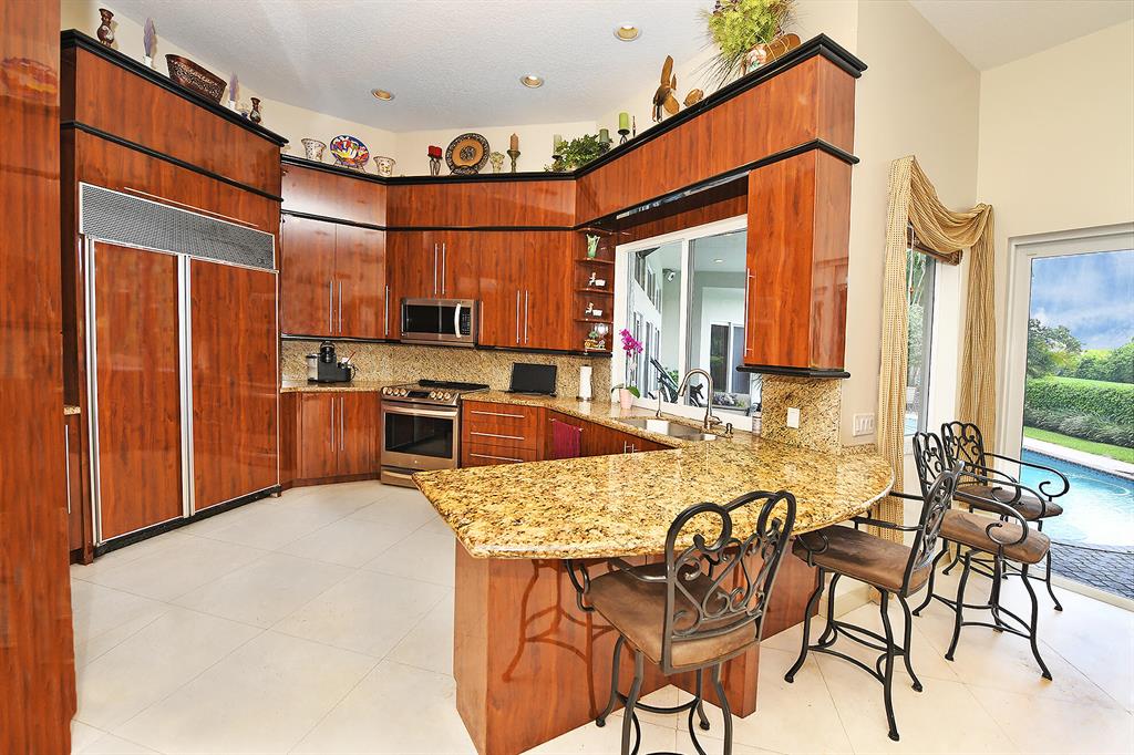 Spectacular one story golf course residence situated on the 7th fairway in Boca Grove. The house features four bedrooms, each with their own bath, and a den/bonus room with bath ensuite. The open floor plan is great for entertaining and the split bedroom layout allows privacy for all family members. The spacious master suite boasts his/her closets and a lavish master bath with a stand alone European tub. The gourmet kitchen, with newer appliances and granite counter tops, leads to a lovely family room with views of the pool and golf course. Hurricane protection in the form of impact glass completes the package. Come and experience all that Boca Grove has to offer.