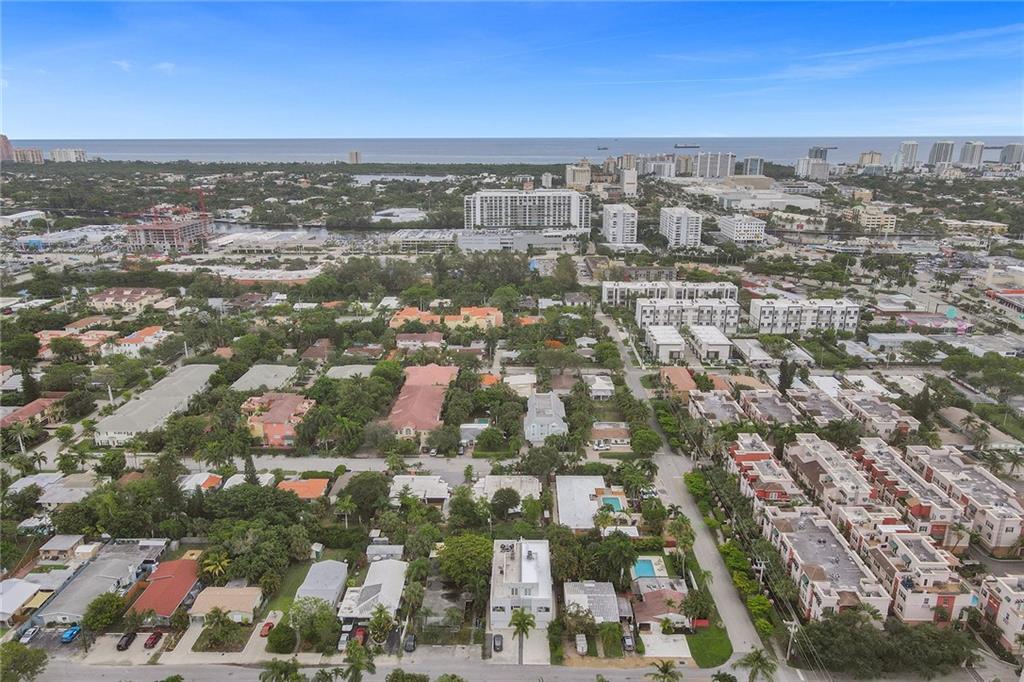 Check out this unique townhome built in 2010 that is owned like a single home with no HOA. Modern architecture abounds with high ceilings, large wall of windows letting in natural light and even a rooftop deck perfect for a summer kitchen, hot tub and casual lounging area. Enjoy your main living area at the entry level and secondary den upstairs-perfect for a home office. Guest suite on top level provides privacy with living Room and Bedroom with private bath. Enjoy a full 2 car garage with storage and large driveway for extra parking. Step out from the living room on to you private patio with pool. Just perfect modern living and close to shopping & dining along Federal Highway, Less than 2 miles to the Beach and to Downtown. A location you just can't beat. See today!