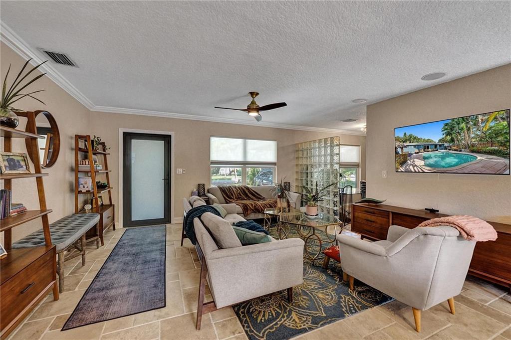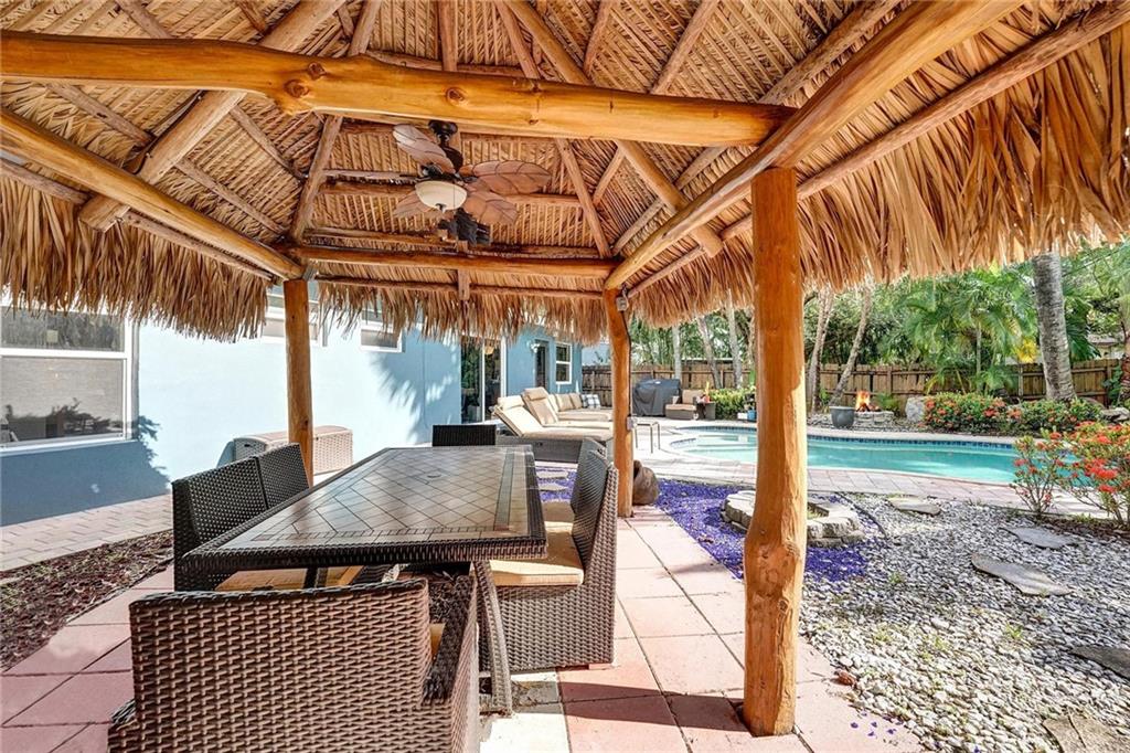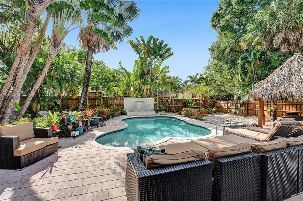 Enjoy the South Florida Lifestyle. Tropical Pool Home with Tikki Hut & Waterfall. New Architectural Shingle Roof w tie downs(2020), New Impact Windows/Doors (2022). Custom Kitchen with Solid Ash Cabinets & Azul Macuba Brazilian Granite Counters. Travertine & Terrazzo Flooring. Hi-End Light Fixtures, Ceiling Fans & Custom Window Treatments. Current Configuration is 2 Bed 2 Bath, 2nd Bedroom can be divided into 2 w/ dividing wall to make a 3rd Bedroom. Office Space off the Living Room. Large Windows offer an Abundance of Natural Light. Walk to Hortt Park with Tennis, Volleyball, Softball, Walking Paths, Outdoor Gym Equipment & Playground. Enjoy the Bill Keith Preserve on the New River. Shady Banks is Minutes to Las Olas, Downtown & the Beach.