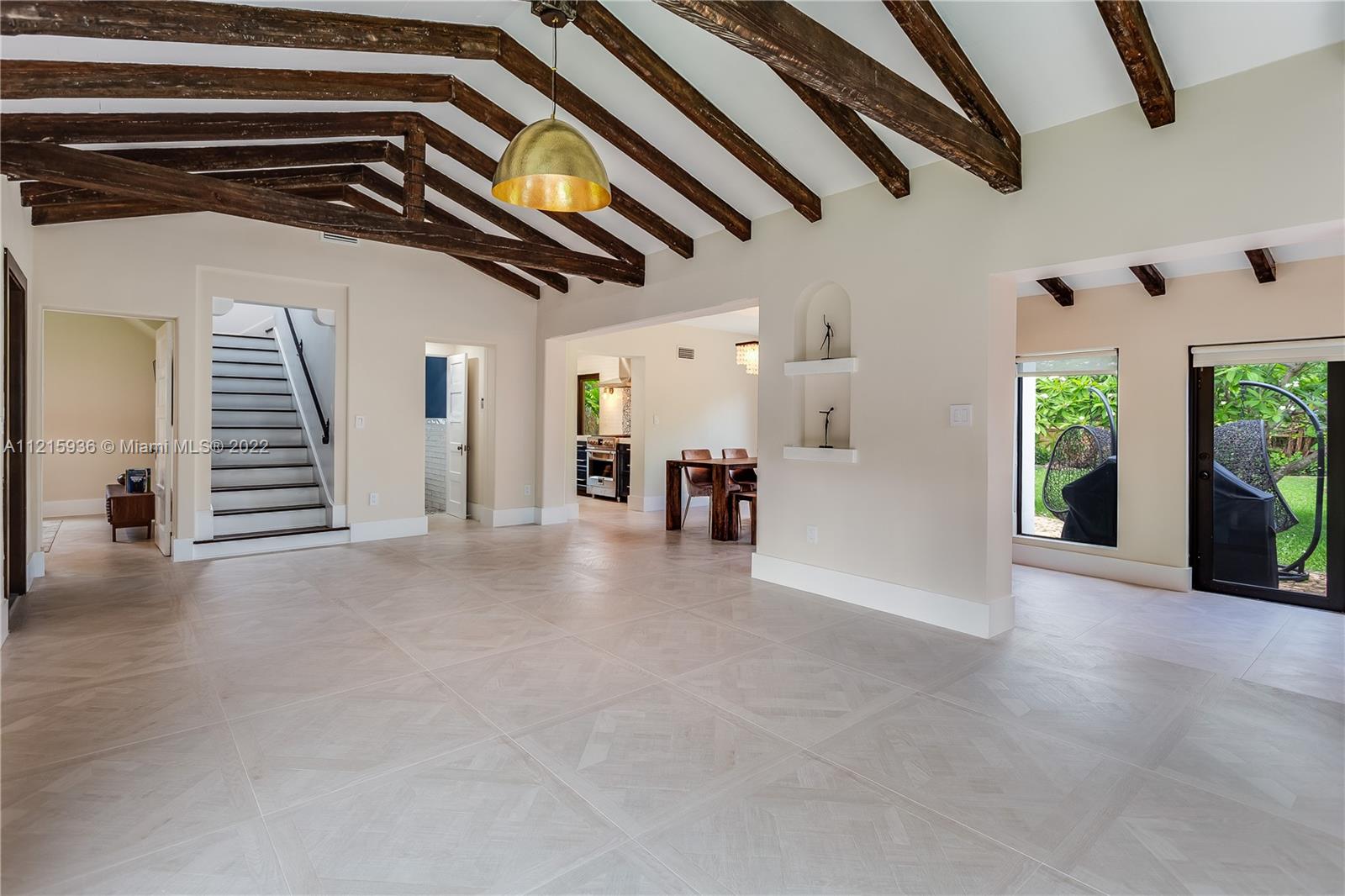 Beautiful turnkey renovated 4 bedrooms/4-bathroom home, a separate detached guest house with a full bathroom being one of the 4. Hurricane rated impact doors and windows throughout. Beautiful large fireplace, high beamed natural wood ceilings and an extra bonus room that can be used for dining or a den. French doors lead to an enormous backyard with plenty of room for a pool and then some. An extra-long driveway with a one car garage led to a gated front yard area. Sunken back on prestigious Alton Rd this house offers lots of privacy on a very large 9200sf lot. Wonderful quiet family neighborhood, Great schools and neighborhood park, Minutes to beaches, South Beach and downtown. A must-see property.