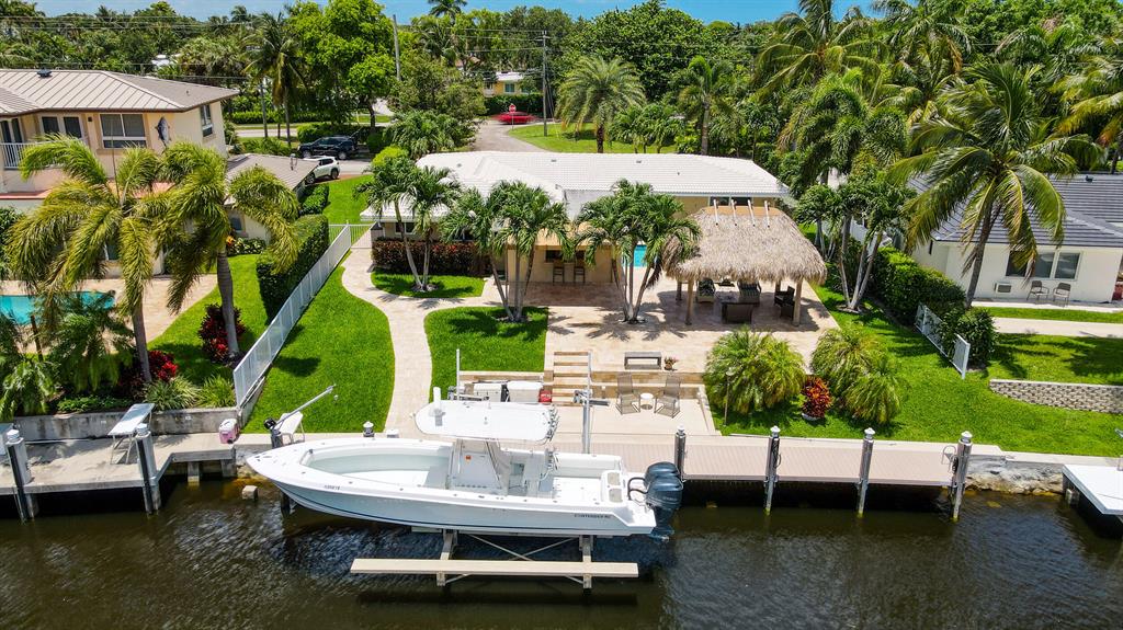 THIS IS THE ONE YOU HAVE BEEN WAITING FOR, BOATERS PARADISE. SIX (6) MINUTES TO THE HILLBORO INLET. UPDATED MOVE IN READY THREE (3) BEDS THREE (3) BATHS. FULL IMPACT GLASS, CROWN MOULDING, NATURAL GAS RANGE & WATER HEATER. THE LARGE BACKYARD HAS PLENTY OF ROOM FOR YOUR CHILDREN OR PETS TO RUN AROUND, FEATURES INGROUND POOL, TIKI HUT, GAS BBQ, BAR AREA. SEVENTY THREE (73) FOOT DOCK, NEW 17,000 LB BOAT LIFT. NO FIXED BRIDGES, NO RENTAL RESTRICTIONS