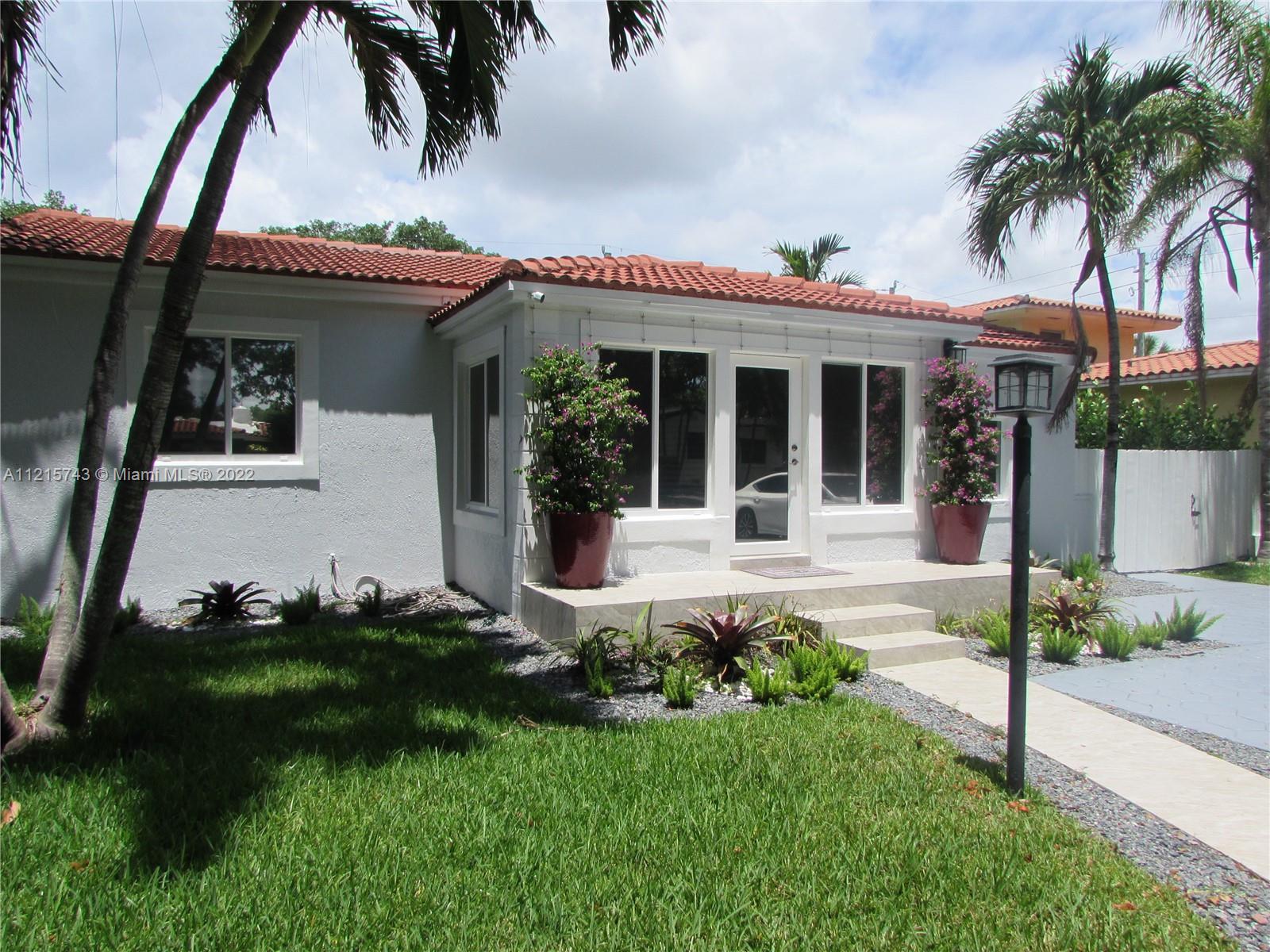 Fully renovated single family home in Miami Shores. This four bedrooom and three and a half bathroom home is located at the end of a Cul de Sac on a quiet street. The property constist of a main house with 3 bedrooms, 2 full bathrooms and a half bathroom PLUS a detached studio in the back of the property with a full bathroom, ideal for an office or guest room. The large lot has enough room for a pool. The property was fully renovated two years ago and has a brand new AC, stainless steel appliances and a covered patio, ideal for entertaining.