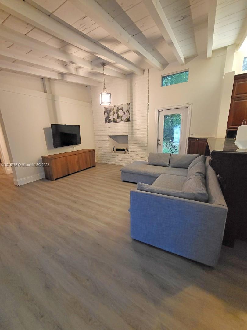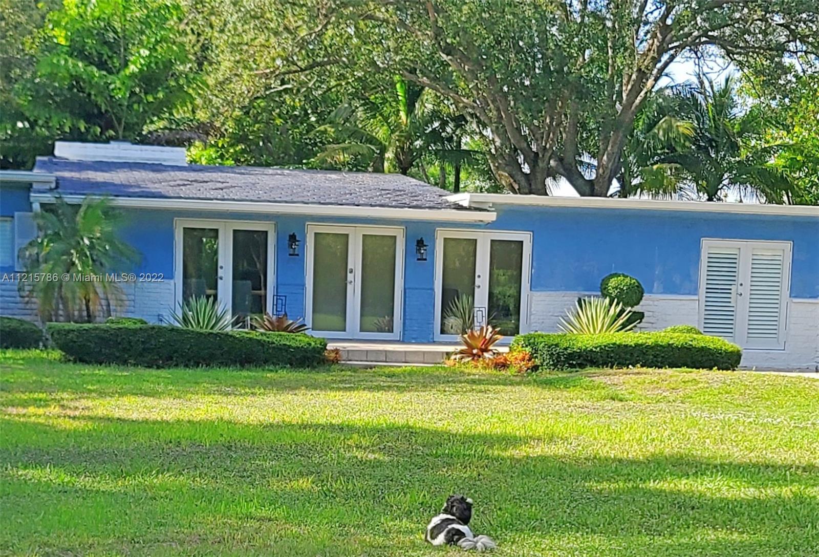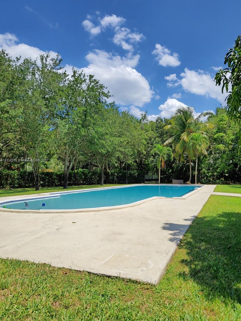 Quiet, inviting, gated North Pinecrest home sitting on over one acre of peaceful greenery. The home is located on a quiet cul-de-sac. The home has multiple mango, avocado and palm trees with a 9' privacy hedge along street. Cottage home has a 3 bed, 2 bath main house, with open floor plan & white Pecky Cypress beam ceilings. The dining area overlooks triple glass doors to an 80' pool & guest house perfect for entertaining. Main house has impact glass and 1-car garage. Pool house was renovated in 2022 with recessed lighting, new kitchen and bath, large porcelain tile floors with 1 bed & full bathroom with an outdoor shower. Guest home can be used as an in-law suite.