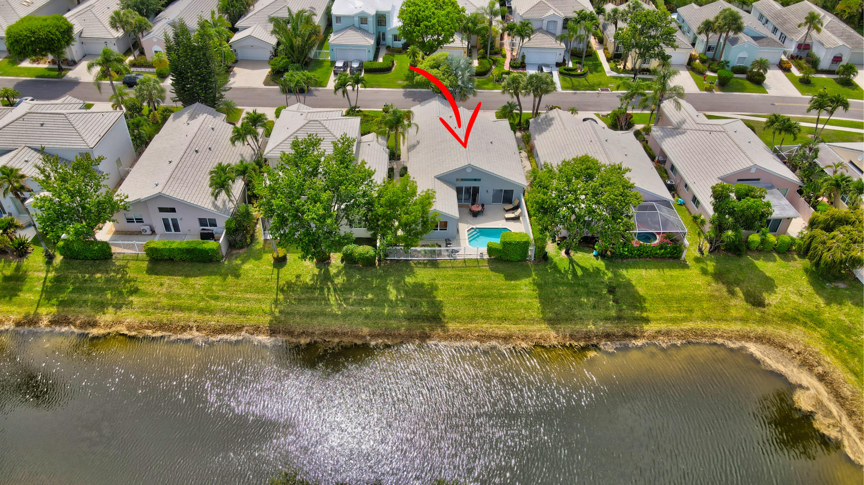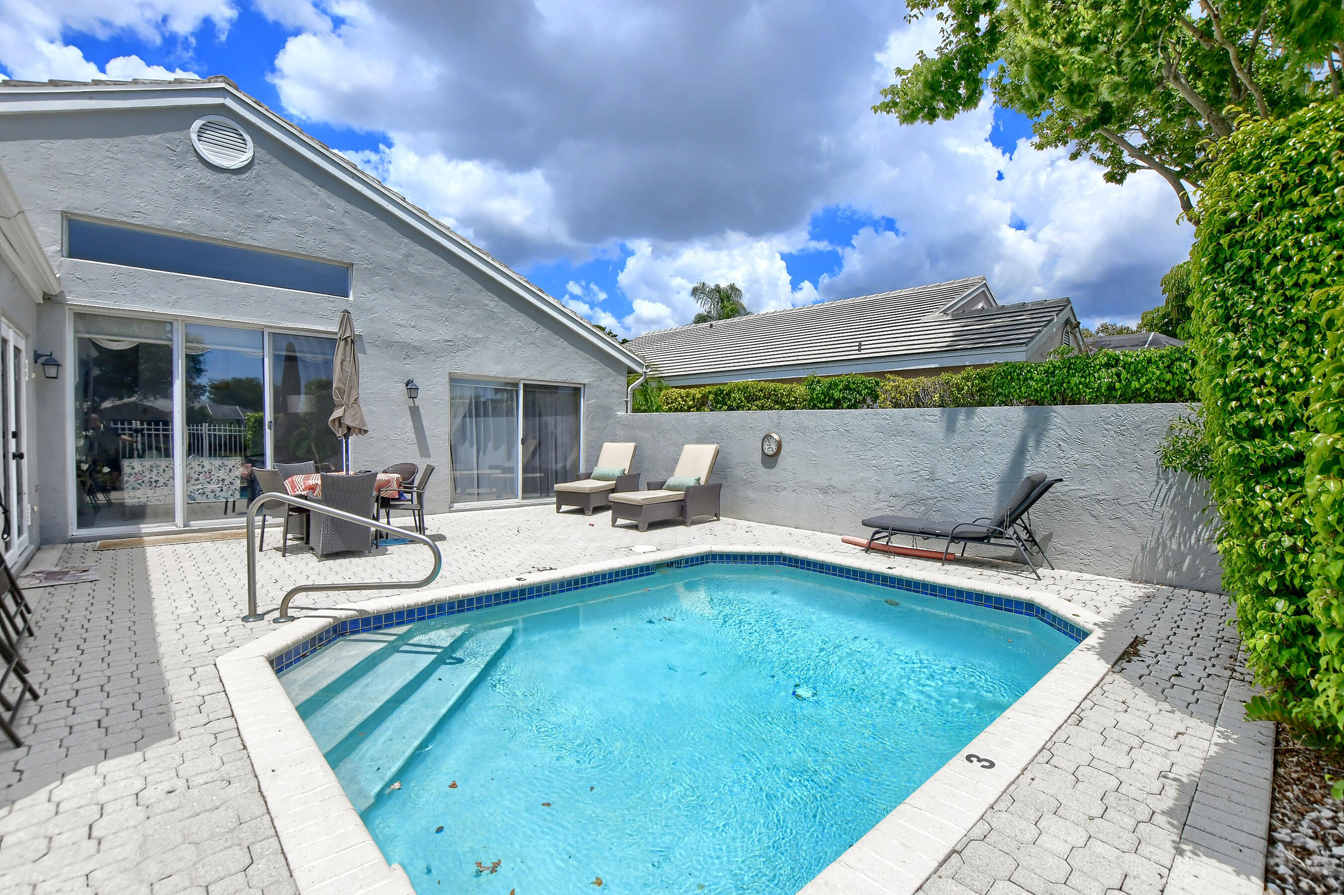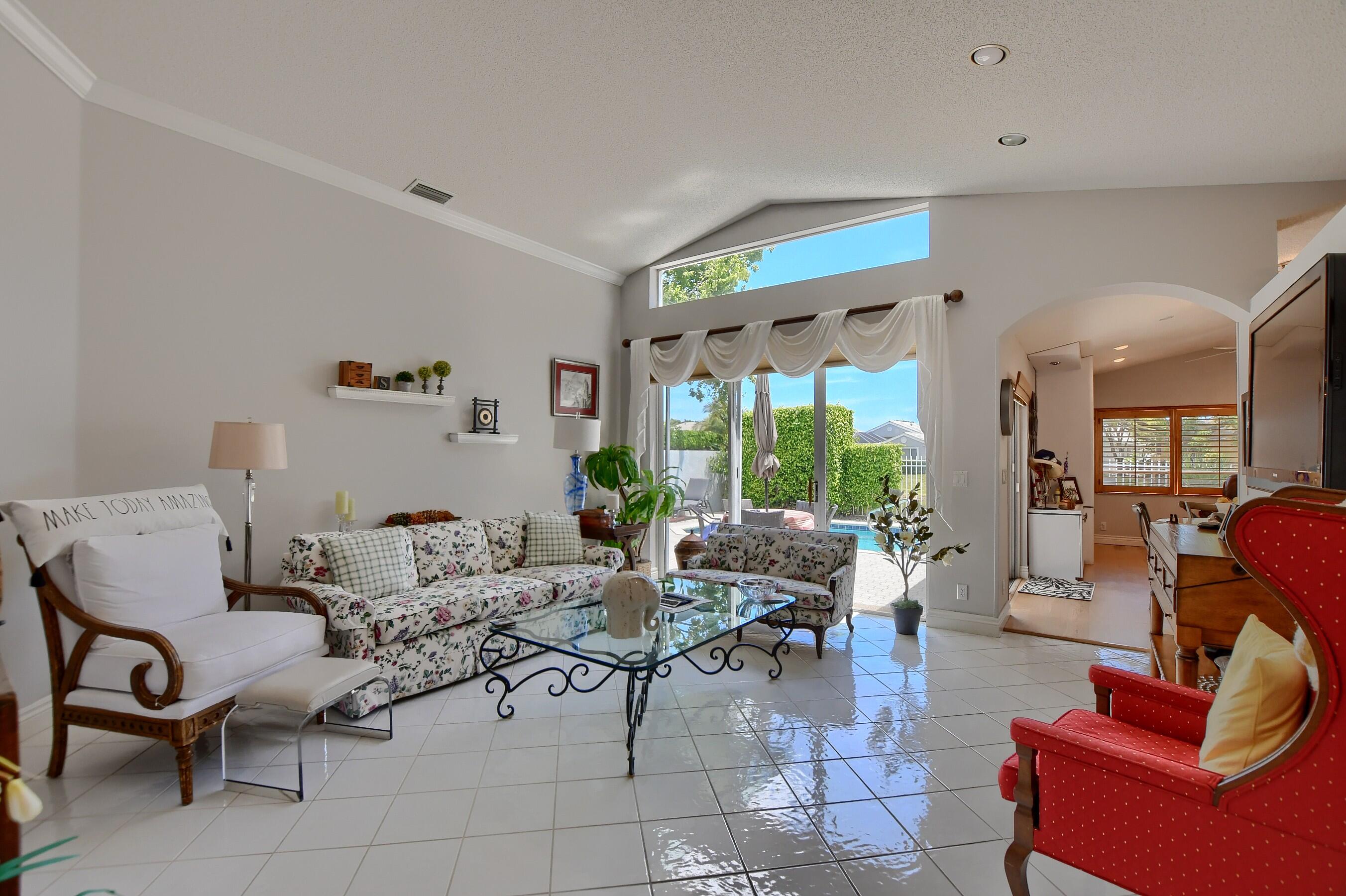 Rarely available 4 bedroom 2 bath 1 story home in popular Palms community of Boca Pointe. Picture perfect location on lake with private heated pool in backyard. A/C is brand new! Floor plan has formal living room and nice den off kitchen. Roof replaced about 12 years ago. Kitchen has granite counters, stainless steel frig and dishwasher. Laminate floors in kitchen and family room plus tile in main living areas. Community has pool! membership optional, but available.