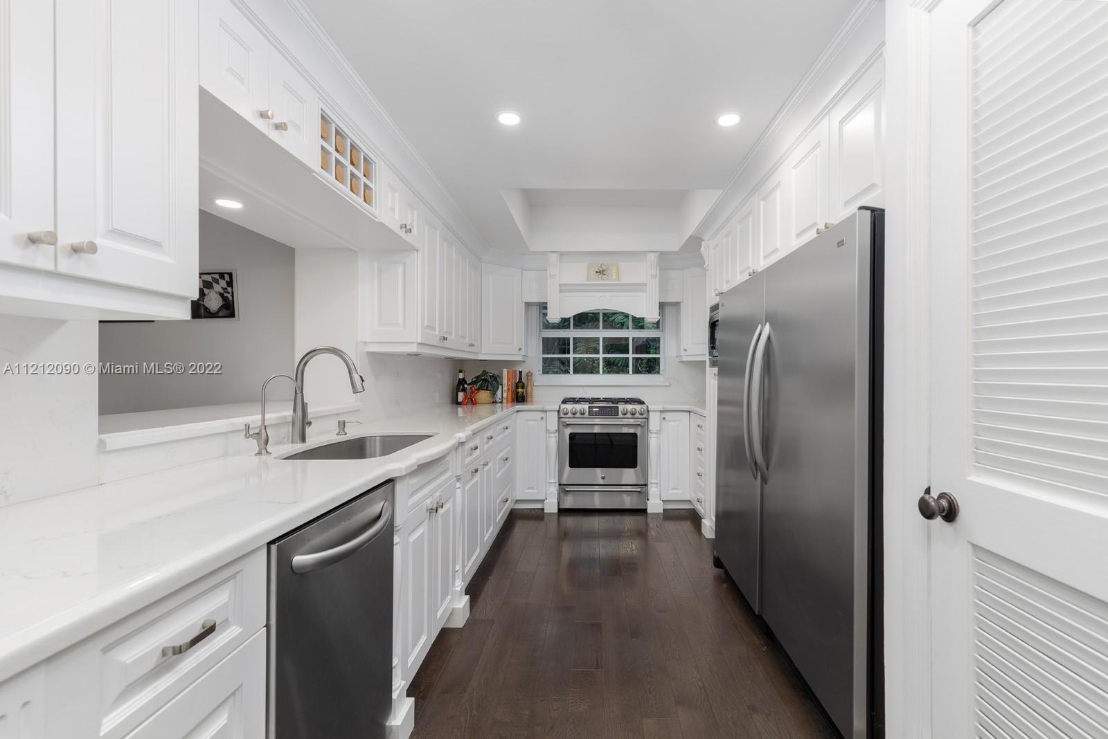 Understated elegance + charm abound in this Coral Gables gem. Set on a quiet street, you’re greeted by a large, covered carport, stunning courtyard w/ lush landscaping + a serene fountain. The 1st floor features ample living spaces w/ dedicated areas for every need, a newly-renovated kitchen w/ gas range, 1 bedroom, full bath + an abundance of windows that allow for natural light + views of landscaping/pool at every turn. Upstairs, you’ll find 2 large bedrooms w/ shared bathroom, in addition to the primary suite w/ an attached bonus office/den featuring magnificent views of the gardens + resort-style, heated pool. Additional features include covered patio w/ summer kitchen, ample yard space, mature landscaping, walk-in closets + generator. Upstairs floors + primary bath were just redone.