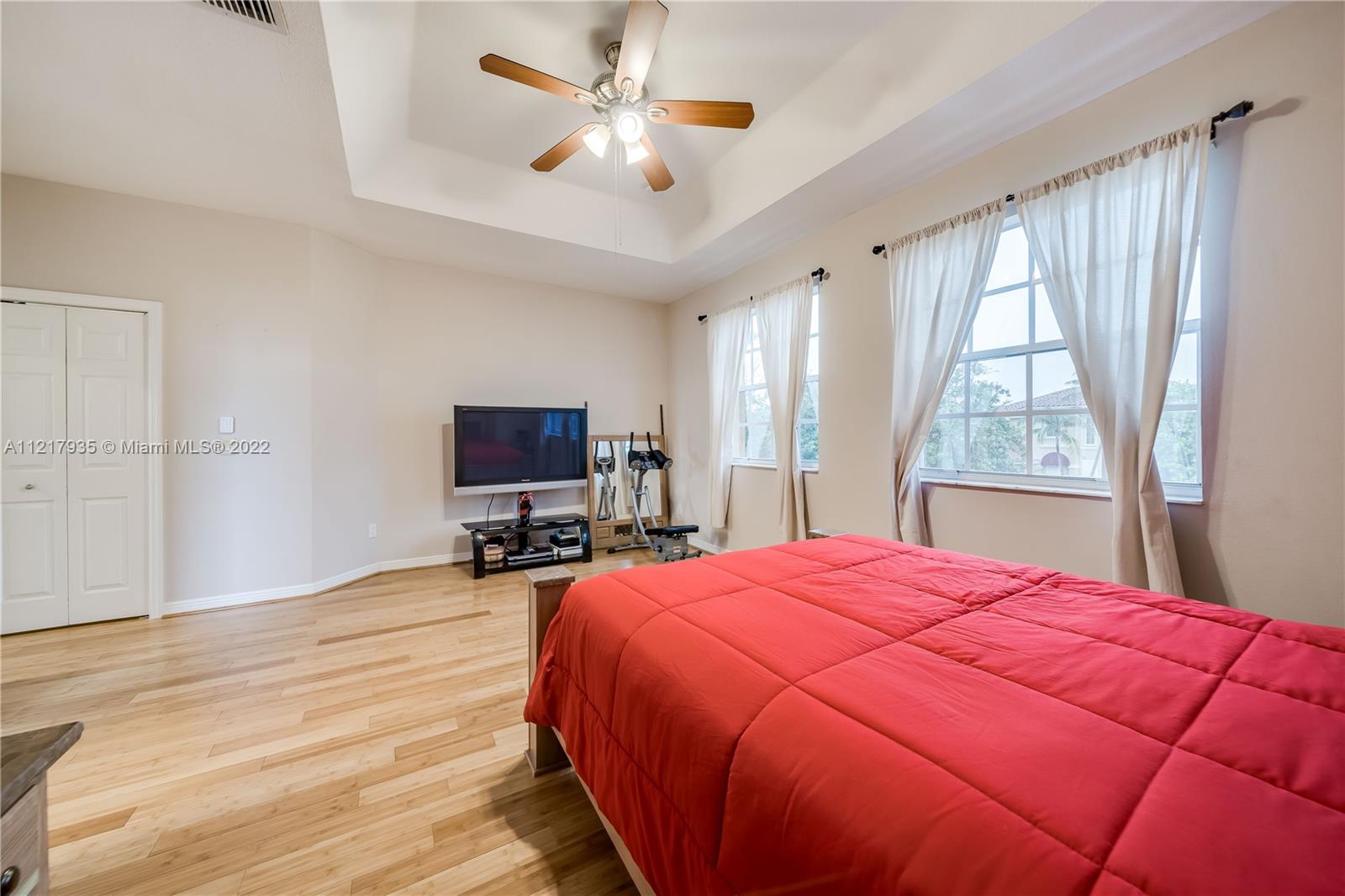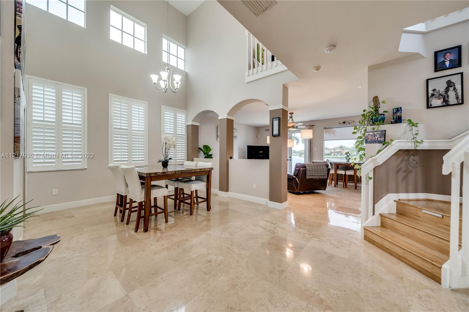 4 bed / 2.5 Home in Immaculate condition. Lots of upgrades and pride of ownership is shown. Amazing view of the lake and sunsets. The home features marble floors thru out in great condition and real bamboo wood floors upstairs, Vaulted ceiling with open floor layout and upgraded kitchen. House is located in the very desirable community of Santorini at Vizcaya. This home will not last. Easy to show.