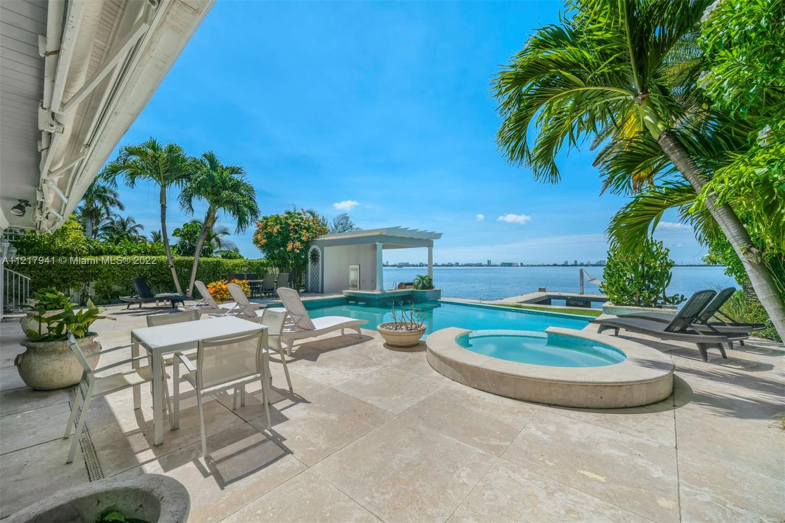 Enjoy spectacular unobstructed wide bay views of the Miami skyline & downtown Miami. Located in North Bay Village, this 2-story home sits on a 9,000 Sq. Ft. lot with 60 feet on the water. An entertainers dream with 4 bed & 4 baths and 1 half bath, marble & wood flooring, high impact windows. Kitchen complete with top-of-the-line Viking appliances, gas range, wine cooler, wall oven, kitchen island with eat-in sitting and formal dining table. The open floorplan blends the indoors & outdoors seamlessly to create an experience like no other. Exteriors feature Chicago brick paver driveway, private concrete dock, infinity edge pool, jacuzzi, wet bar, cabana bath, built-in BBQ, generator & rooftop deck to enjoy breathtaking sunrise to sunset.