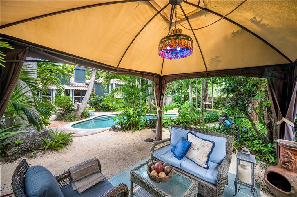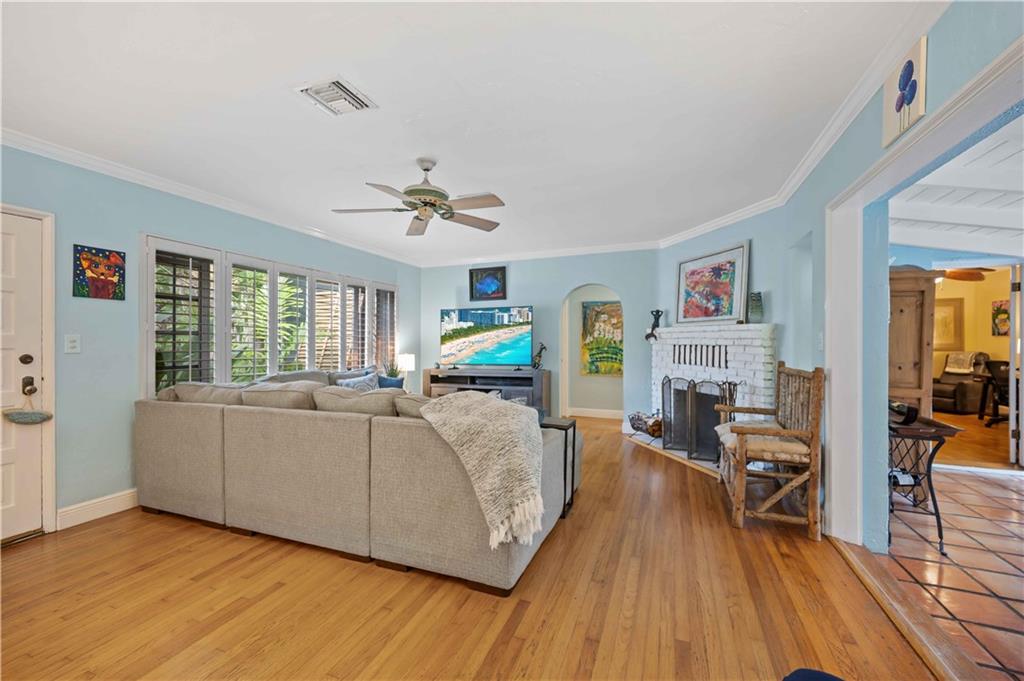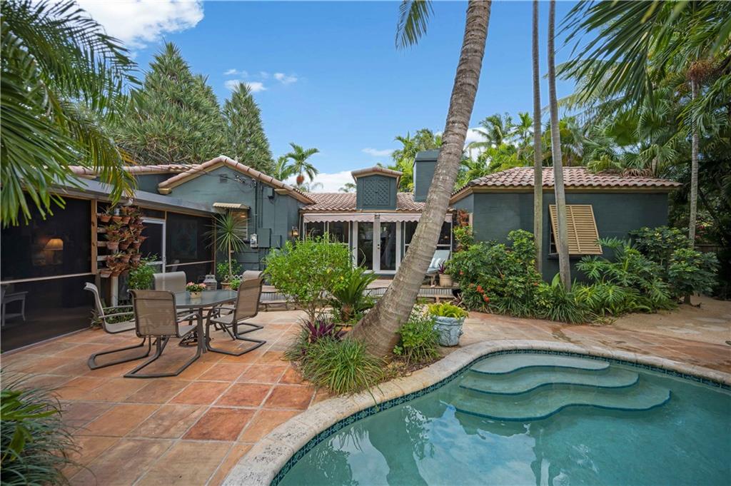 Available for the first time in nearly 30 years. Among the most prominent locations in Victoria Park. The owners of this double lot property have cared for and improved the property over that time adding a pool, an oversized two car garage, multiple patios and gardens and so much more. The main house has three bedrooms, hardwood and art tile floors, a fireplace, Florida room and a newer eat-in kitchen. A screened patio room is where you will want to relax and connects to a separate building housing the laundry. Next door is the one bedroom guest house with its own kitchen and private patio. Paved and gravel pathways travel through this gorgeously landscaped property to hidden its corners and an orchid shed and bar. Two driveways allow space for multiple cars or an RV behind a high gate.