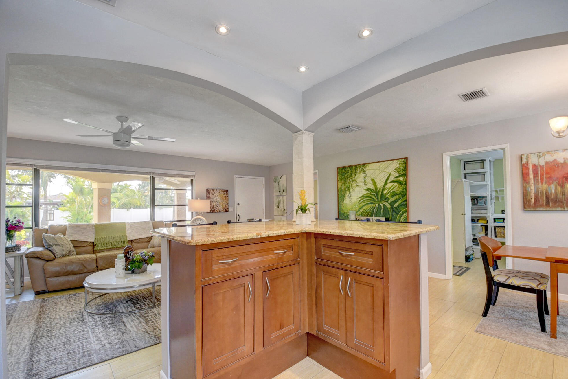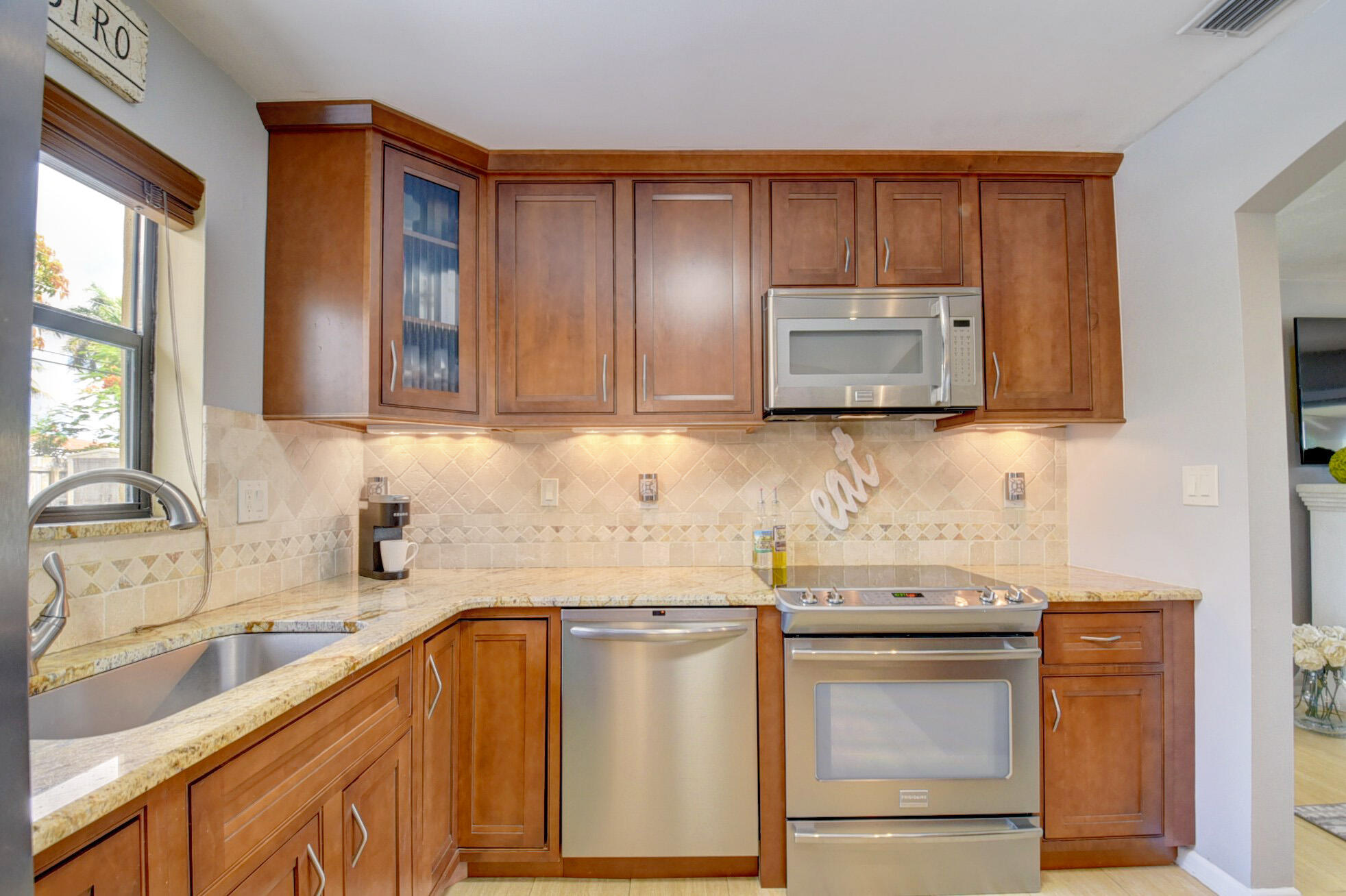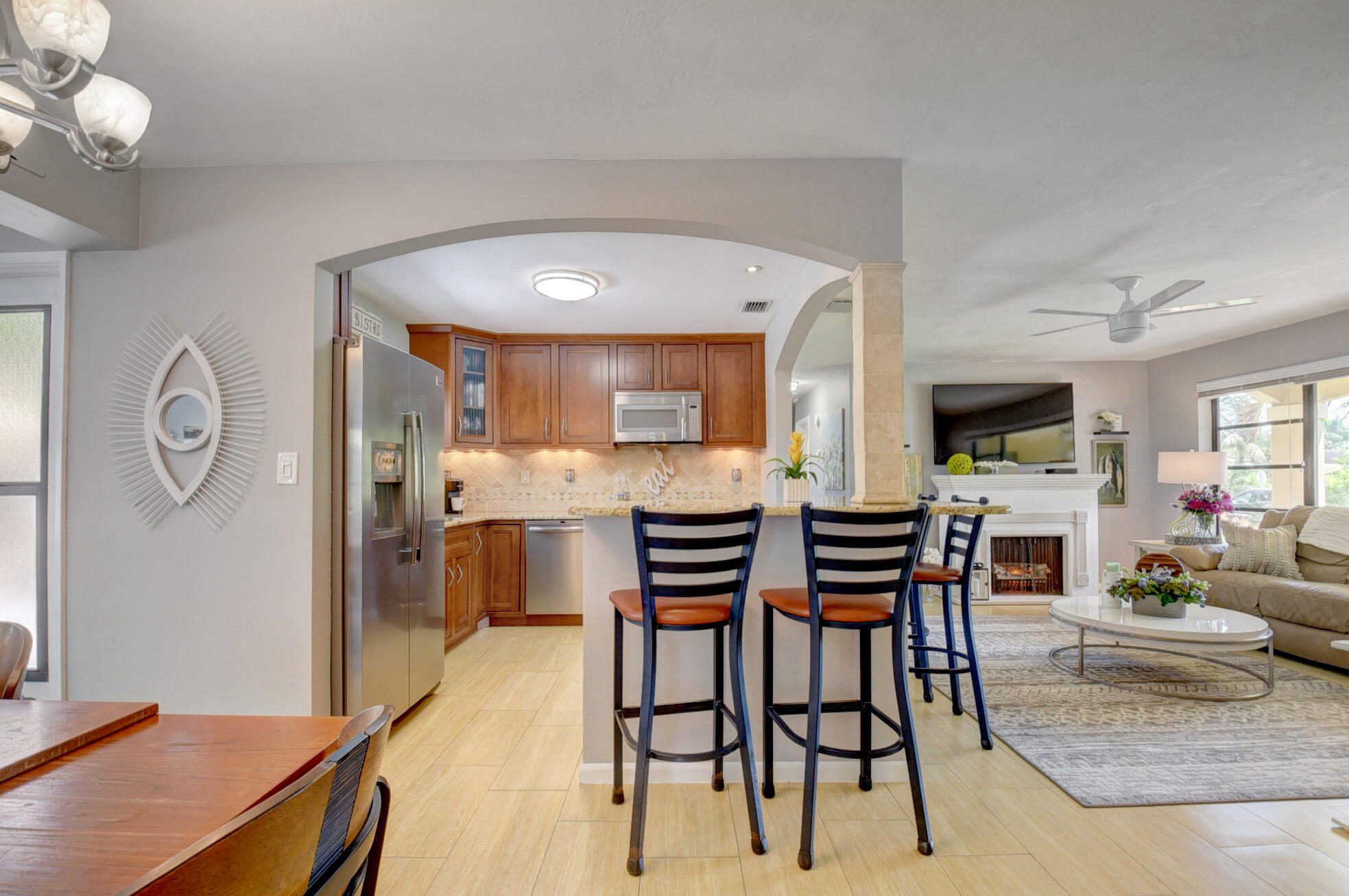 EAST BOCA RATON DESIRABLE LOCATION!CLOSE TO LAKE WYMAN PARK & its' future park amenities, UPDATED KITCHEN, Granite countertops, custom wood cabinets w/corner lazy susan, S/S Frigidaire appliances, Travertine Tile Backsplash, L-Shaped bar height kitchen island area that can seat up to 6 bar stools comfortably for entertaining, Porcelain Neutral Tile flooring , NO CARPETING, OPEN FLOOR PLAN, Updated bathrooms w/frameless Shower glass doors w/same fixtures, Florida, Dining & Family room, areas, Separate Laundry room w/ plenty of Extra Shelving, LG Front Loader Washer & Dryer w/ bottom drawers, Covered EXTRA STORAGE SPACE, GE Electrical Panel replaced in yr. 2020, Exterior of house painted yr. 2020, Roof yr. 2008, Rheem Water Heater 2005, resurfaced Chlorinated PRIVATE POOL
