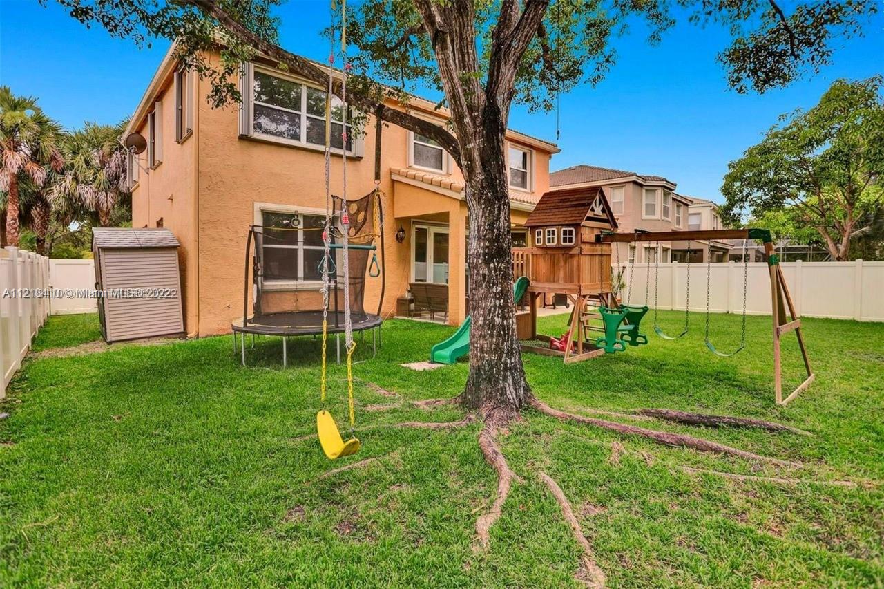 For Rent & For Sale: Riviera Isles 5 BD | 3 BA 2-story home w/ 2 car garage will not last. This community offers everything plus more! 1 full bedroom & bathroom is located downstairs. The kitchen is fully upgraded w/ granite countertops & S/S Appliances. Study area for small office or kids to work off of, plus eat-in kitchen. Island provide ample space for high-top chairs. Impact windows and accordion shutters. Formal living room & Dining room. Family room is off set to kitchen w/ built-in tv. All bathrooms are fully renovated w/ granite countertops and upgraded sinks. Upstairs provides access to the primary bedroom, plus the other 4 spacious bedrooms. Closet feature built in cabinets. Relax outside in the all around fence backyard with playground. All smart home items do convey.