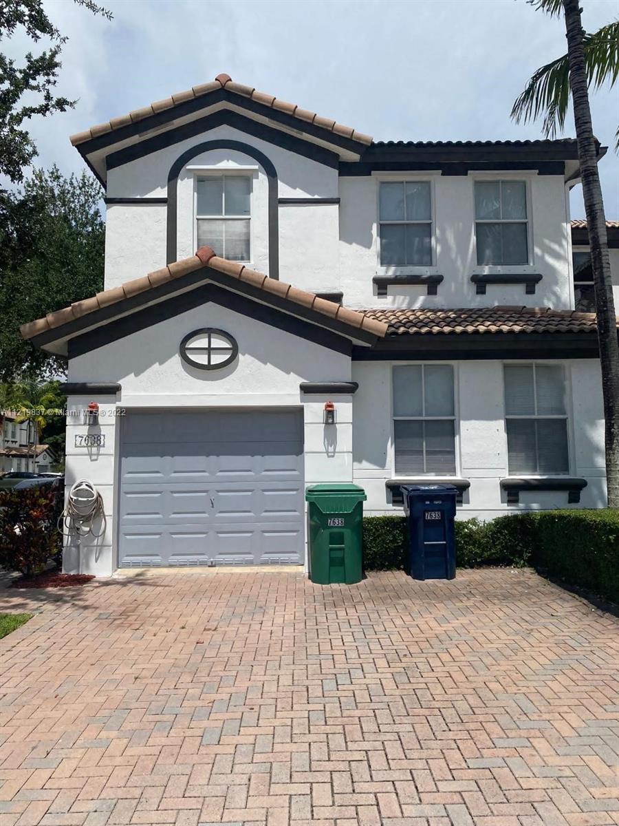 Functional town home with a lot of features: Corner unit with plenty of guest parking. Renovated granite counter top. All the bathroom also remodeled with glass doors. Master bathroom with double vanity. Located downstairs. Fenced patio with pavers. Gated community. Access to Island at Doral clubhouse. don't miss this opportunity.