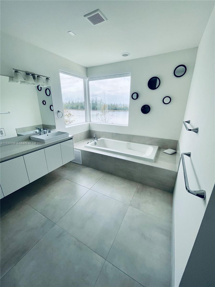 Gorgeous property in private & peaceful community, Modern Doral . The interior features 5 bedrooms, 4.5 bathrooms two story home, 1 room & a full bath located on the first floor. Beautiful modern open kitchen, quartz counter top, Italian cabinetry style, stainless steel appliances and a wine cooler. High ceilings, impact windows and sliding glass doors. Wooden stairs and floors through all the second floor. Master bath, luxury roman tub with a breath-taking lake view. Home comes Smart-Technology ready. Patio offering stunning lake views from every angle, outdoor grill area Clubhouse which includes a fitness center, children playroom, business center, pool, sun deck, BBQ Gazebo & spa.