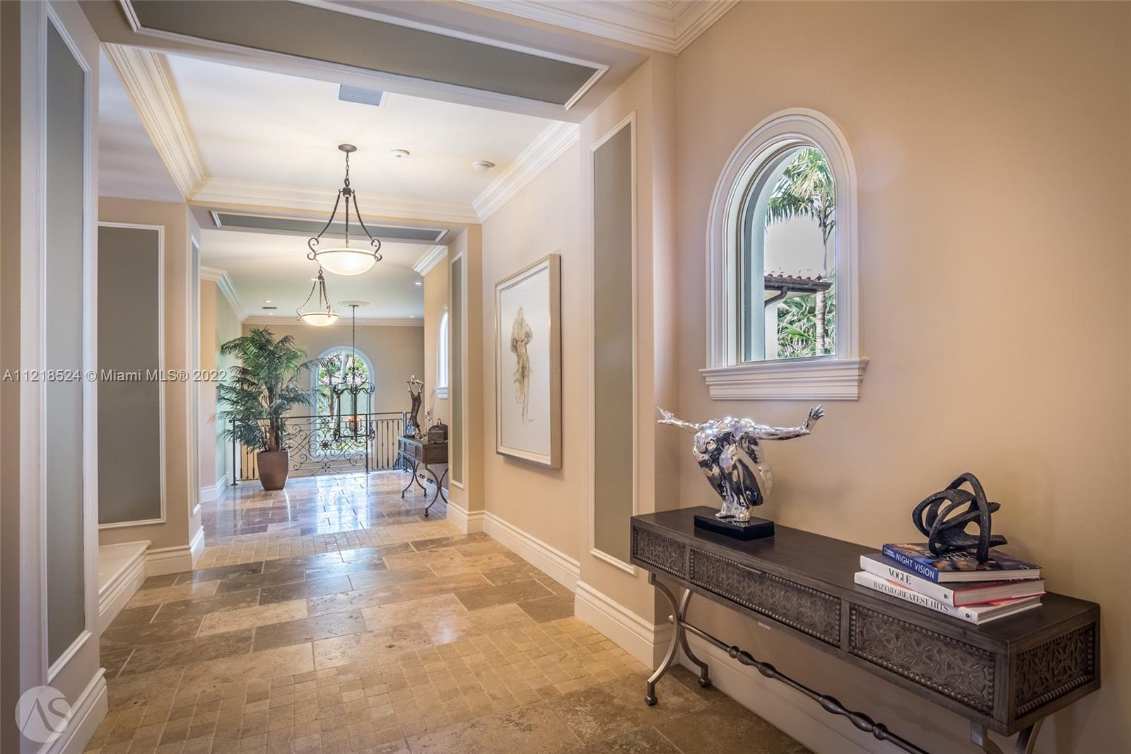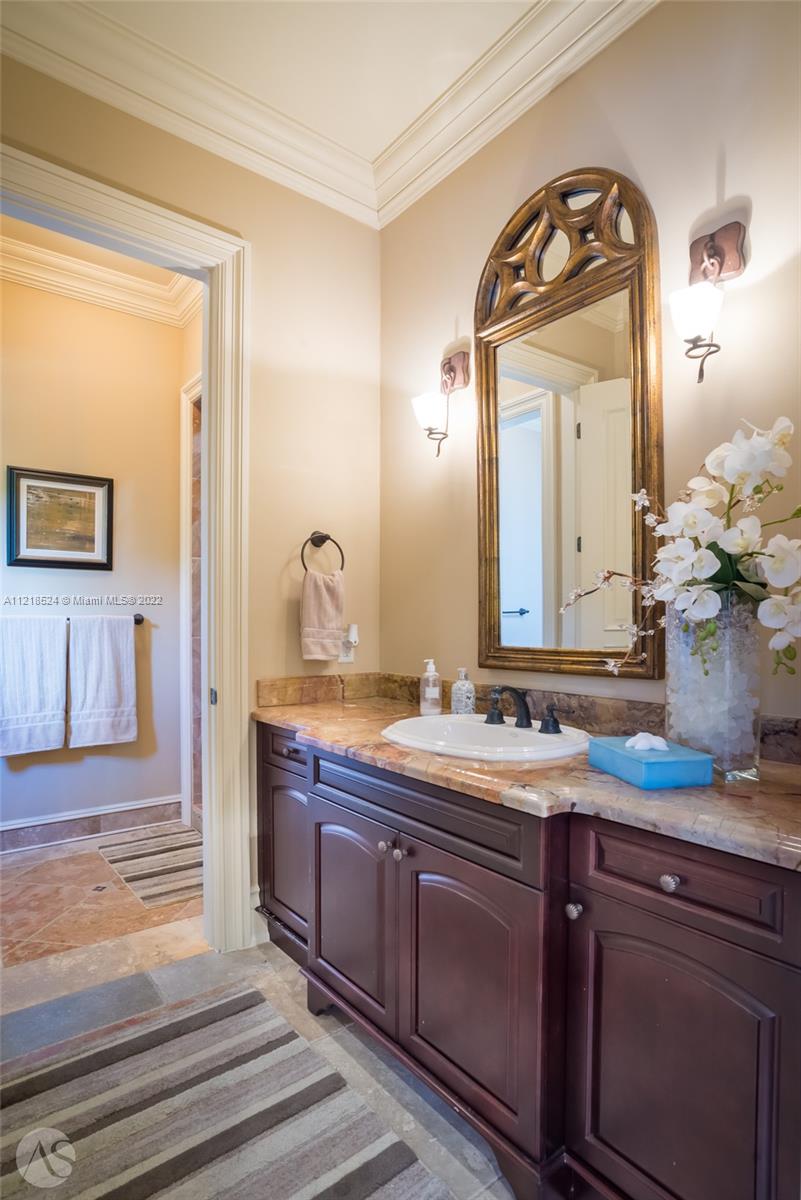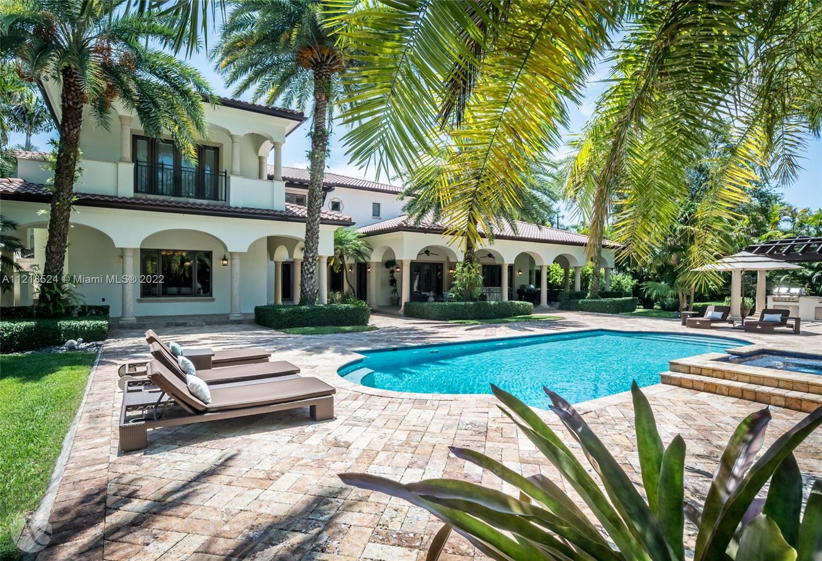 A prized property in the ultra desirable Pinecrest neighborhood. Situated on an acre+ lot, this grand Mediterranean estate boasts character and lush, mature landscaping creating true privacy within its gated setting. A 7 Beds, 7.5 Baths, Crestron-powered smart home w an elegant double height entry rotunda connecting the formal living, formal dining and an axis view to the pool beyond. The home has custom millwork throughout, a spacious gourmet kitchen, large pool w spa and 2 covered terraces w built-in bar, a large office, 3 car garage w an additional covered driveway w access to the kitchen. Exquisite primary suite with adjacent sitting area and terrace overlooking the pool. This attractive home is a dream backdrop for entertaining + enjoying peaceful evenings in the tropical backyard.