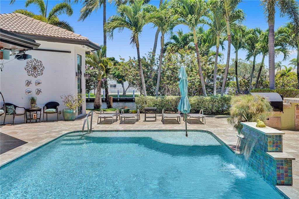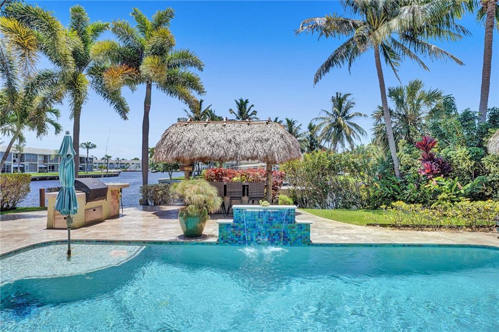 Wow on the Water A Breathtaking 190 foot Point lot w/180ft dock+10,000lb old boat lift. The backyard faces E,NE. There is a constant breeze to enjoy from your backyard. Over 50k in tropical landscaping. Complete privacy! You will find multiple private lounging areas as you explore the property.2 tiki hut fun zones overlooking the newly updated saltwater, heated pool with shallow swim area. Built in gas grill and WHOLE HOME GENERATOR. Travertine all around the exterior.Split&open plan Master suite with 12 ft ceilings, walk in his/hers closets, Updated bathroom,2 car garage, marble and real wood flooring in the bedrooms, Impact Glass throughout, chef's kitchen with Thermador gas cook-top and upgraded appliances,2 wine frig's laundry/espresso bar area off the kitchen.