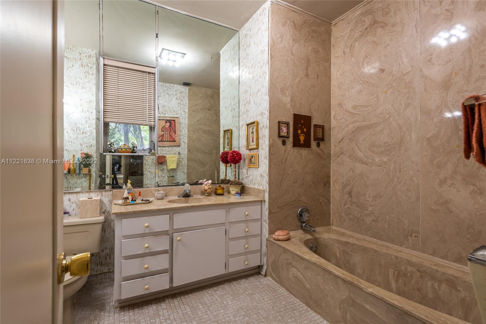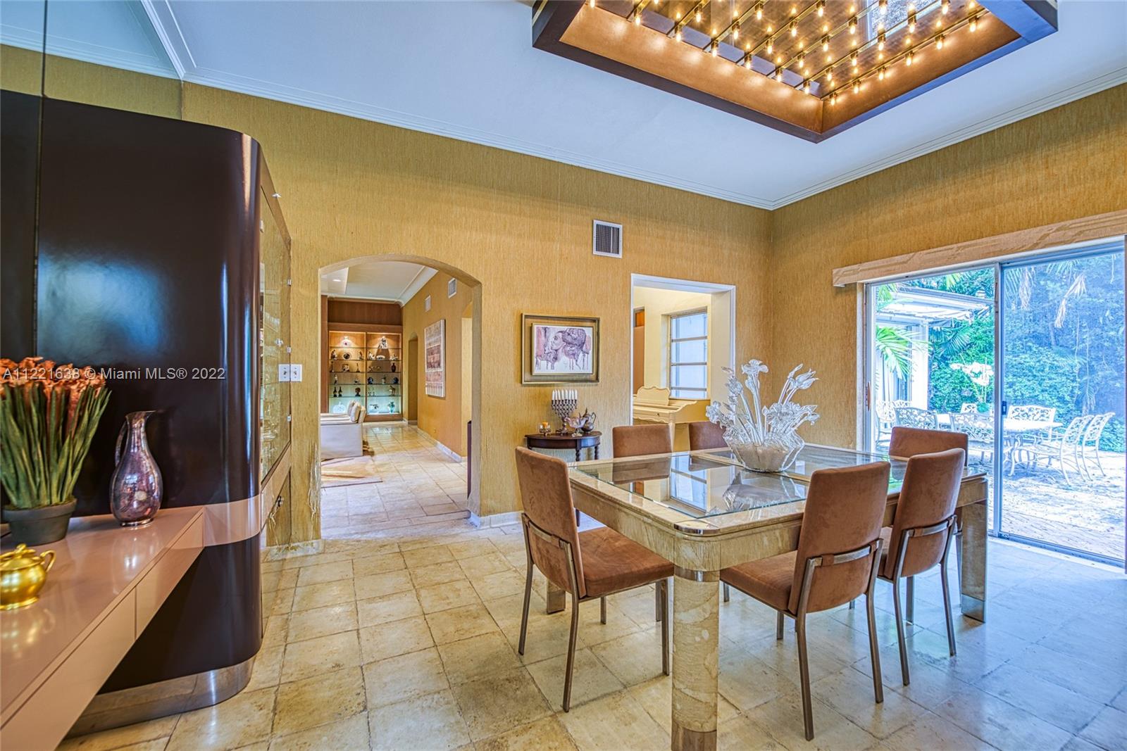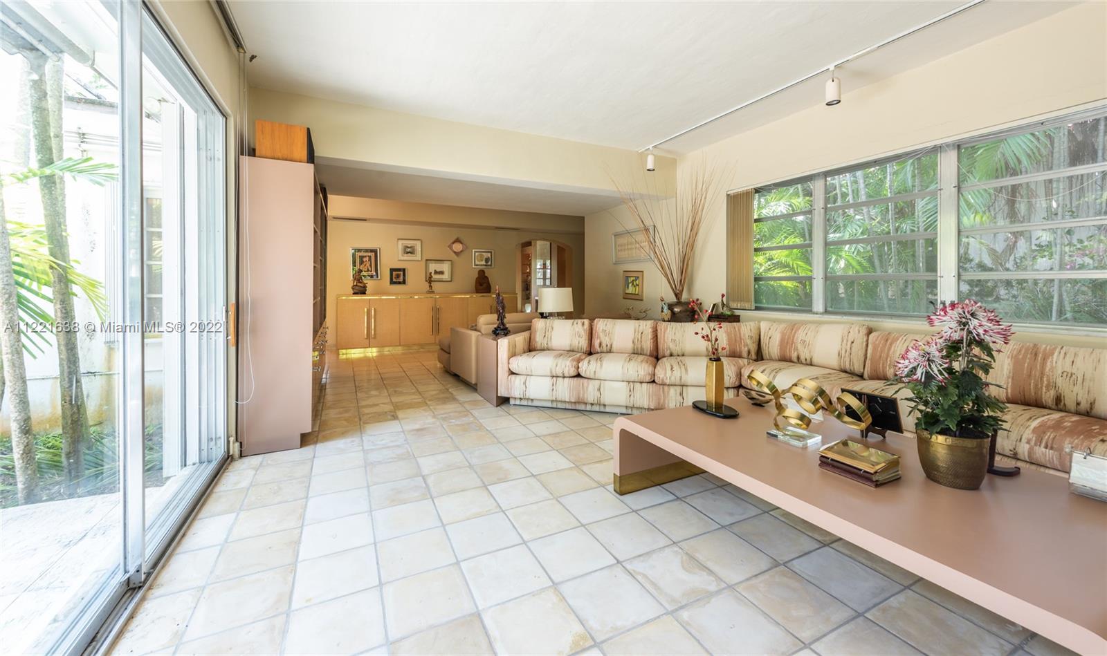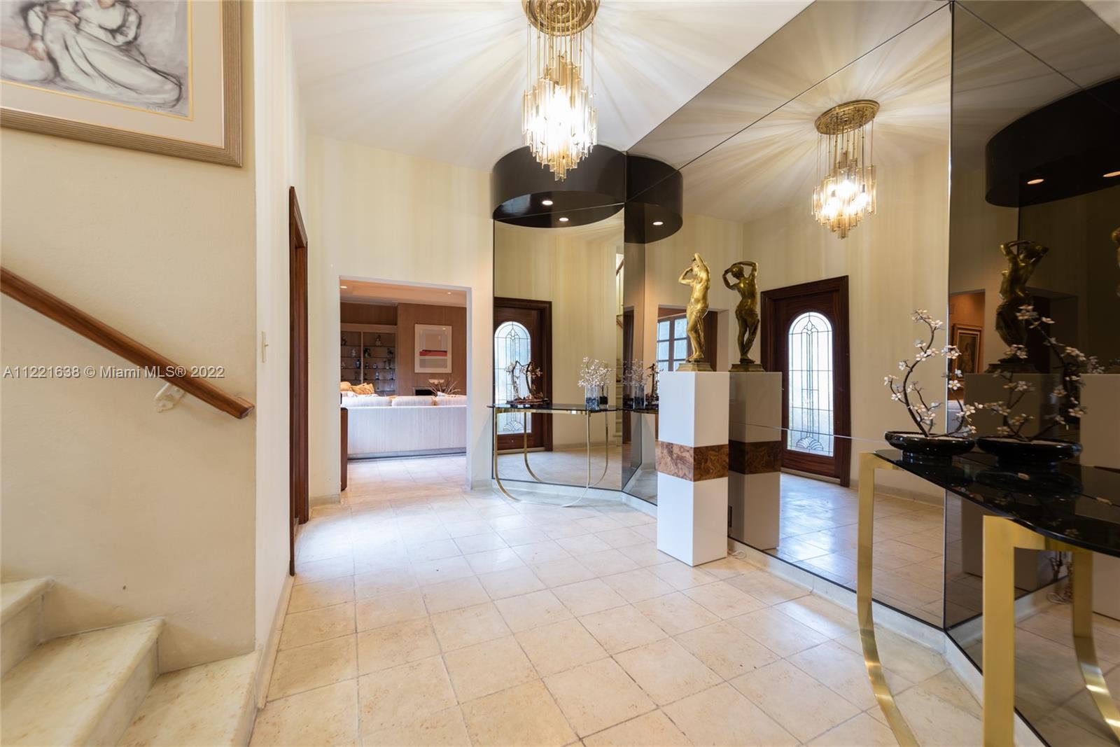 Grand home on exclusive La Gorce Island. This stately 5 bedroom 2 story home boasts a perfect layout. Featuring an elegant foyer entry leading to spacious living room with fireplace, oversize family room with built-in wet bar, formal dining room, and eat-in kitchen, are all part of the timeless design and architectural allure. Envious floor plan with 4 bedrooms and 4.5 baths upstairs, featuring a large principal suite with his and hers bathrooms, ample closets, and private access to oversized balcony. Impressive garden and grounds with private patio and room for a pool. Full house generator, 2 car garage, and separate laundry room. Great location, great lot, great potential. Square footage living area per appraisal is 4,098.
