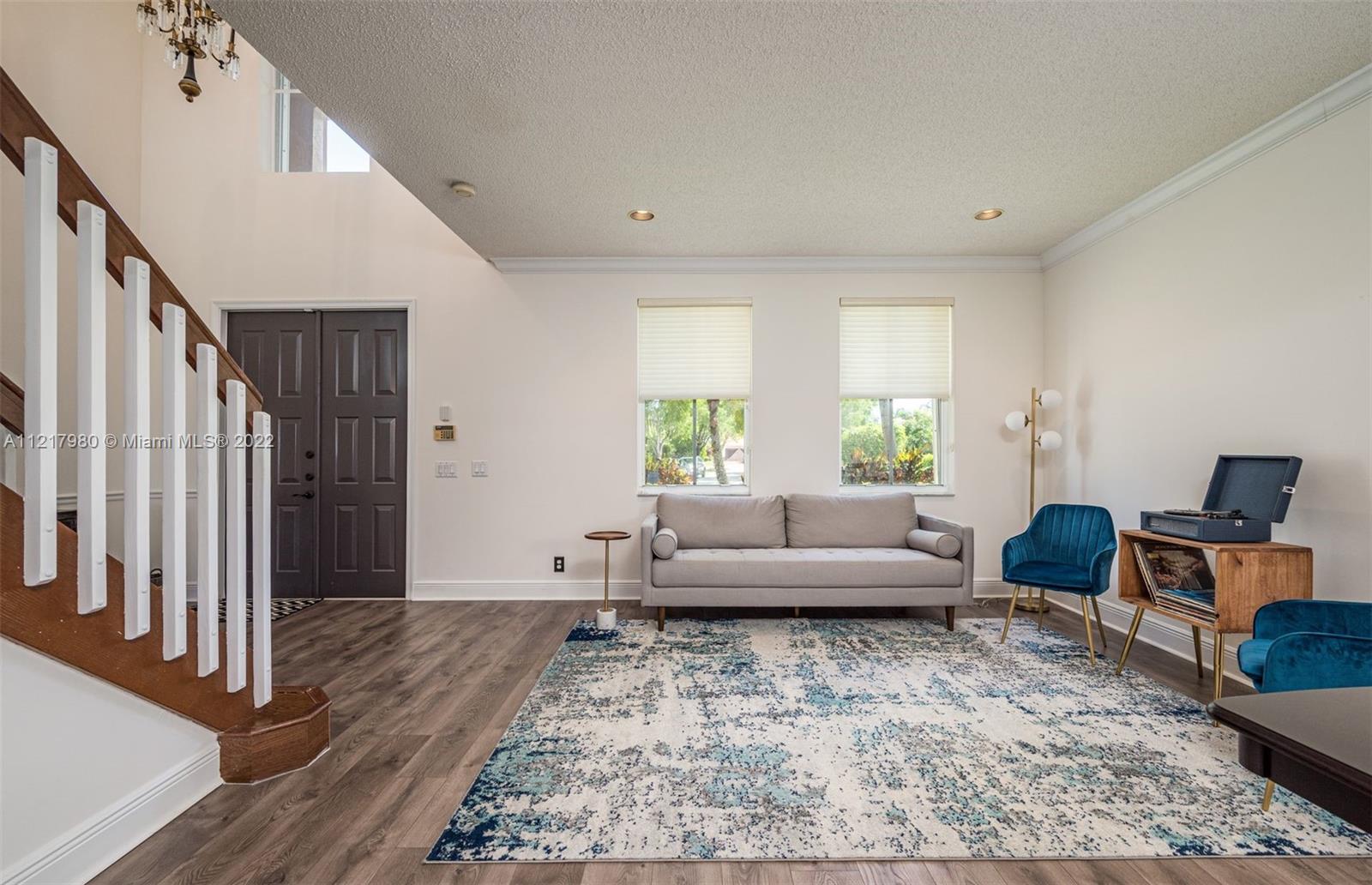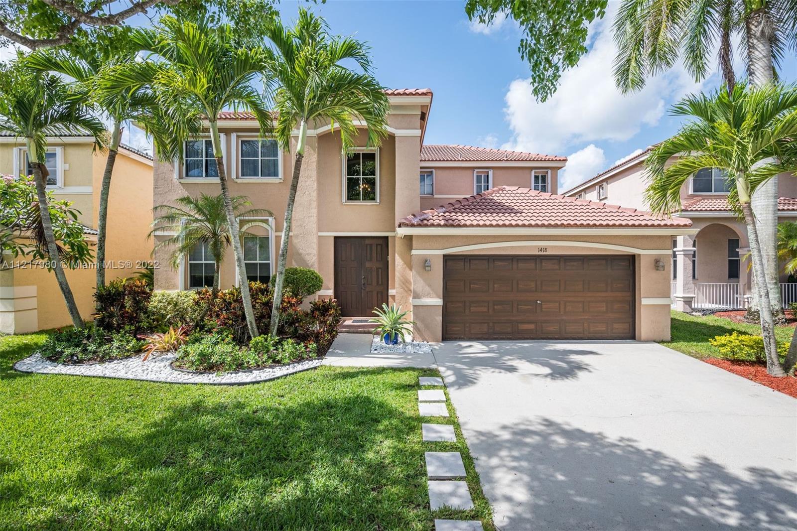 Magnificent 5 bedroom 4 bath home in the highly coveted Savanna Grove II neighborhood of Weston. Breathtaking foyer with 2-story ceilings and a grand staircase leading to the 2nd floor. Newly installed flooring throughout the 1st floor, with a clean, modern design. Freshly painted in cool grey tones to appeal to all tastes. Eat-in kitchen with white cabinetry and glass accent doors, granite counters and stainless steel appliances. Kitchen opens to the family room. The perfect setting to entertain or enjoy time together with the family. Separate living and dining area. Sliding doors lead to the outside patio and pool situated on a spacious backyard. Gated community with a fabulous clubhouse, pool and waterslides. A+ schools. Enjoy the South Florida lifestyle!!