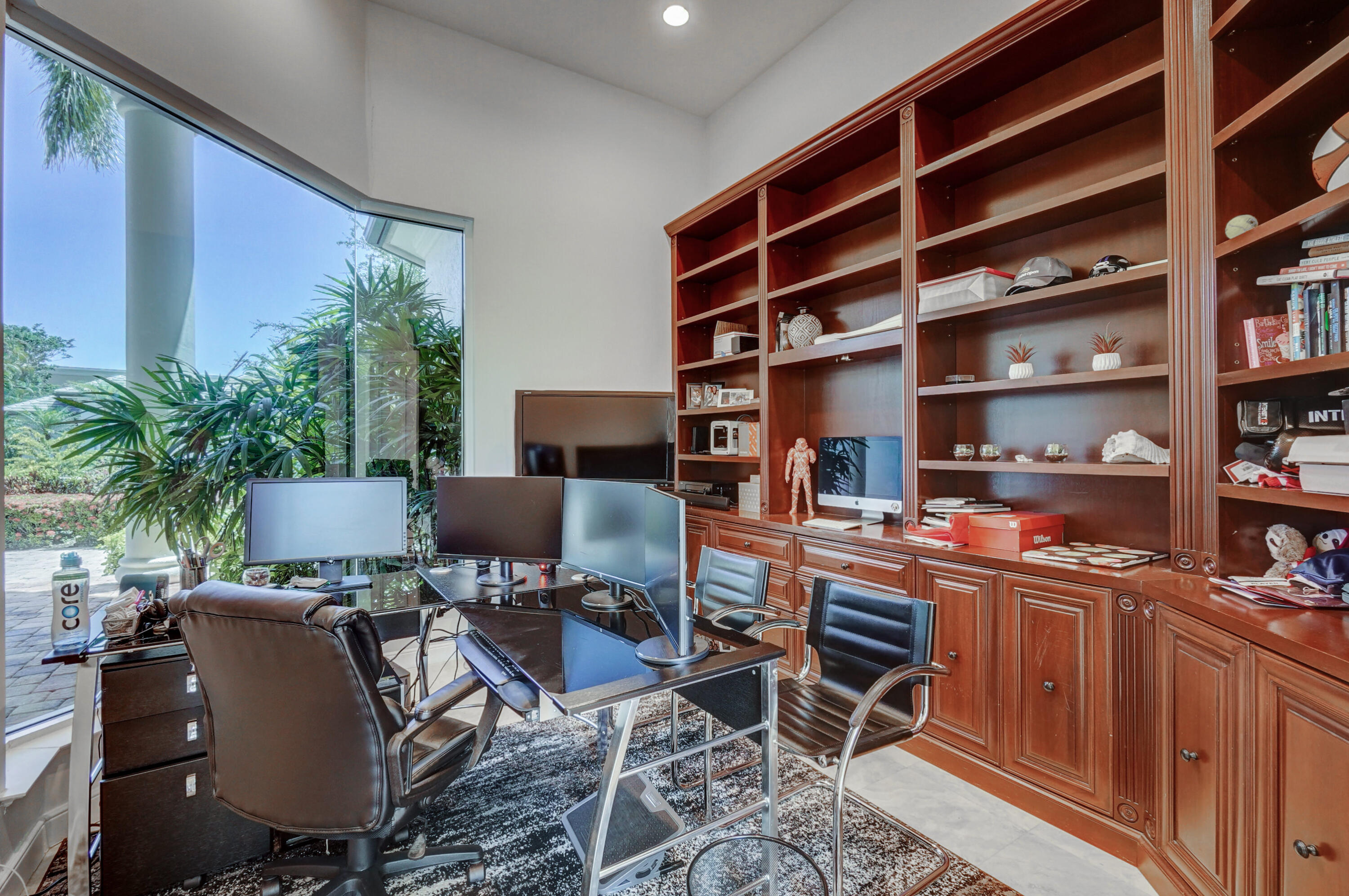 Finally a home that lives up to expectations! Perfectly situated on an interior lot backing to 5.5 acres of a protected nature preserve for ultimate privacy. This 5 bedroom custom home has been updated to a contemporary, transitional decor. Light and bright with soaring ceilings, marble & wood floors throughout. The master suite encompasses the entire west wing of the house & features two sitting areas with beautiful views of the pool & preserve. A custom private office overlooks the front grounds. The kitchen & family room are open & feature high ceilings, stainless steel appliances, natural gas cooking & walk in pantry. All the secondary baths have been updated. The pool is oversized & the new travertine marble deck is stunning. Covered patio & summer kitchen completes this home.