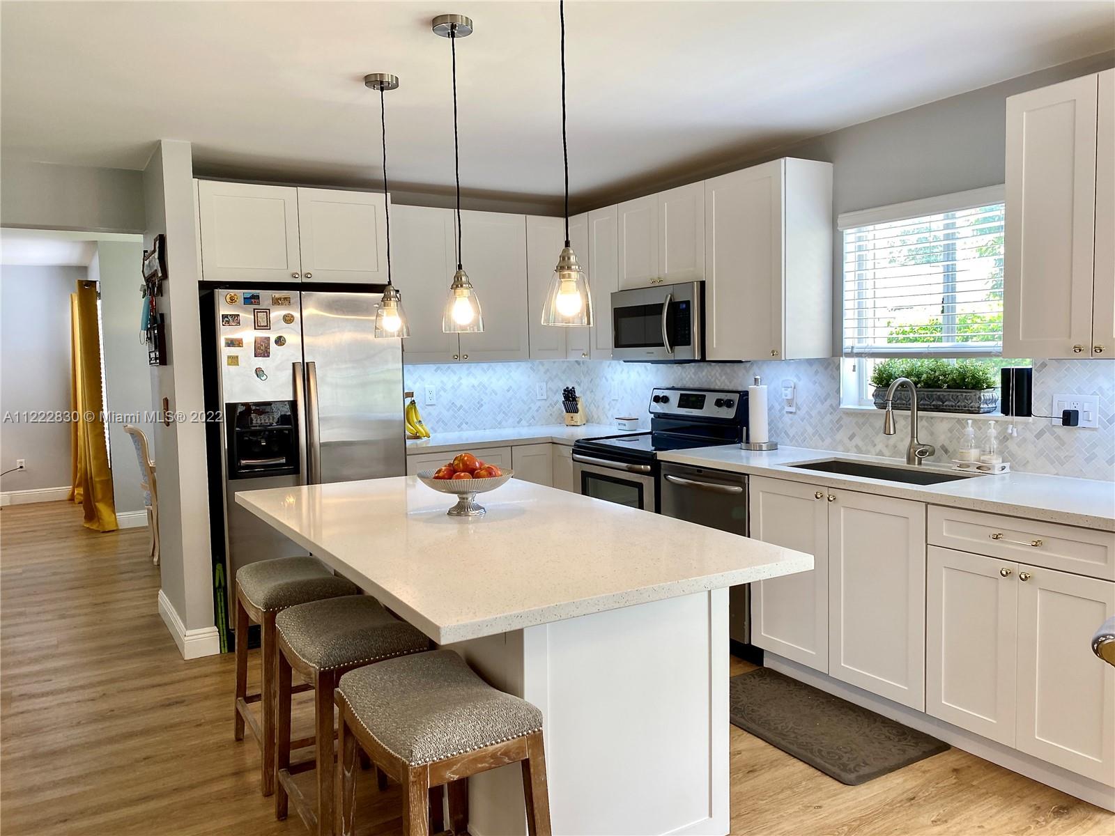 Enjoy a tranquil view of the sunset on your backyard overlooking the lake with these 4 bedrooms 2 1/2 bathrooms home. Newer roof November 2919, A/C 2020, new laminated wood floors throughout, brand new wood kitchen cabinets, quartz countertop with coordinating backsplash, island with drawers and decorative panels, deep sink. Recently remodeled two bathrooms, fenced backyard, impact garage door and much more, low HOA fees, Community with Pool, Tennis Courts, 24 hr. security and camaras in both entrances, great location close to Pembroke Lakes Mall, Shops at Pembroke Gardens, CB Smith Park, Memorial Hospitals, International cuisine Restaurants and Shops, Elementary and Middle School Charters. Ready for Quick closing!!!