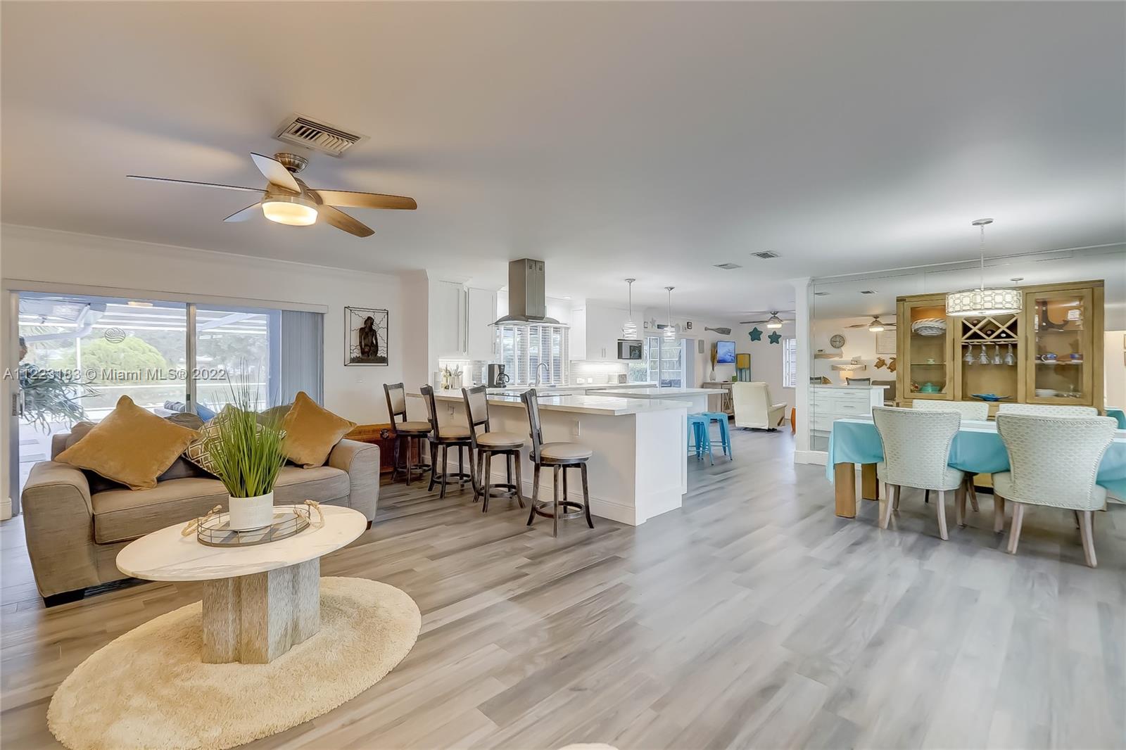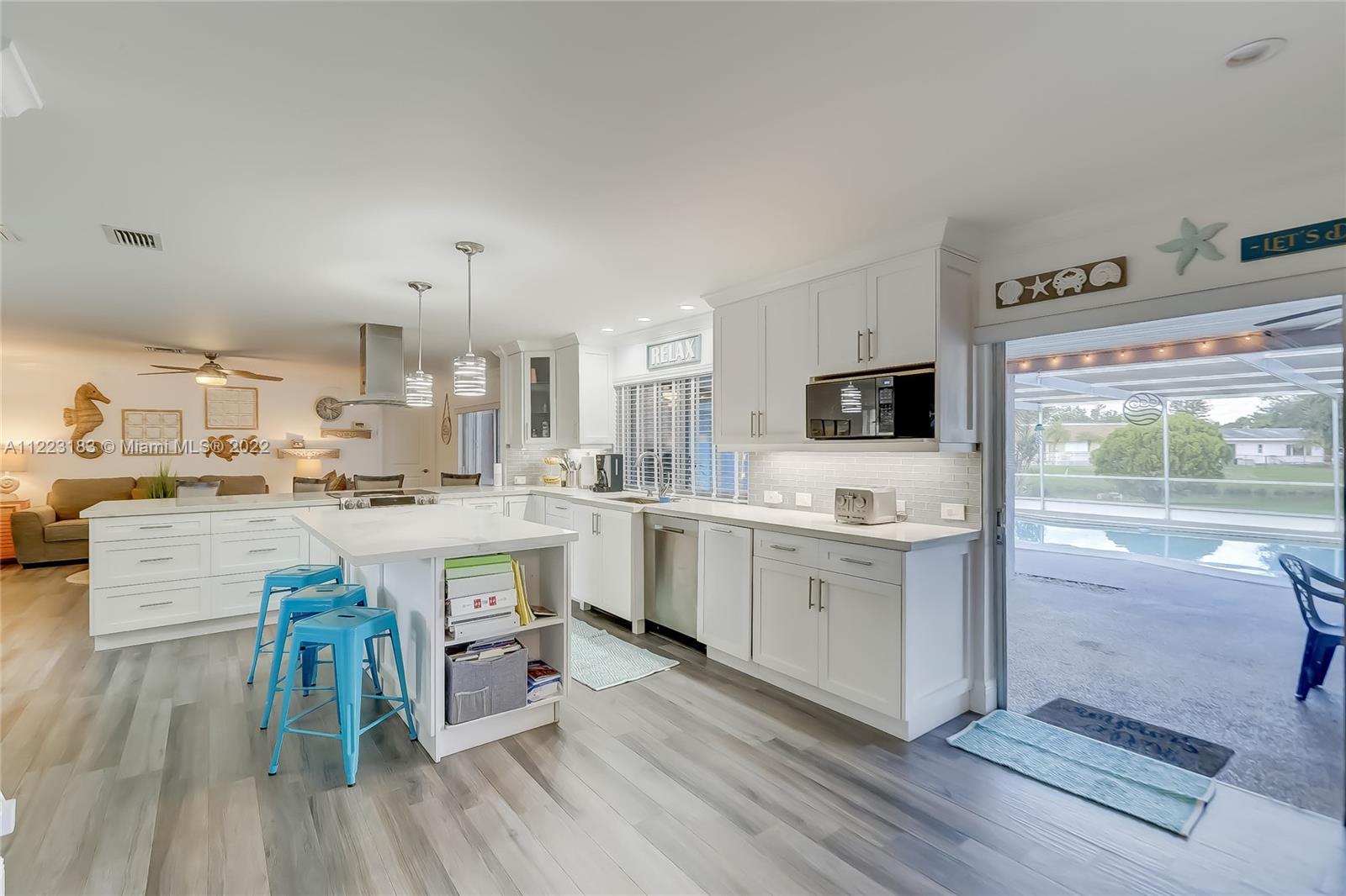 Amazing opportunity to own this 3-bedroom 2-bathroom pool home on the water in Plantation with no homeowner’s association! Immaculate and TOTALLY REMODELED with impact windows, tiled floor throughout, remodeled bathrooms and kitchen, open floor plan! Lots of natural light, bright and airy! New water heater (2020); Air Conditioning (2022)! Huge backyard with a screened in pool perfect for outside entertaining! Exterior of house was painted in 2021! Located on a quiet cul-de-sac and centrally located to stores, banks, shopping and restaurants! Pride of ownership shows in this house!