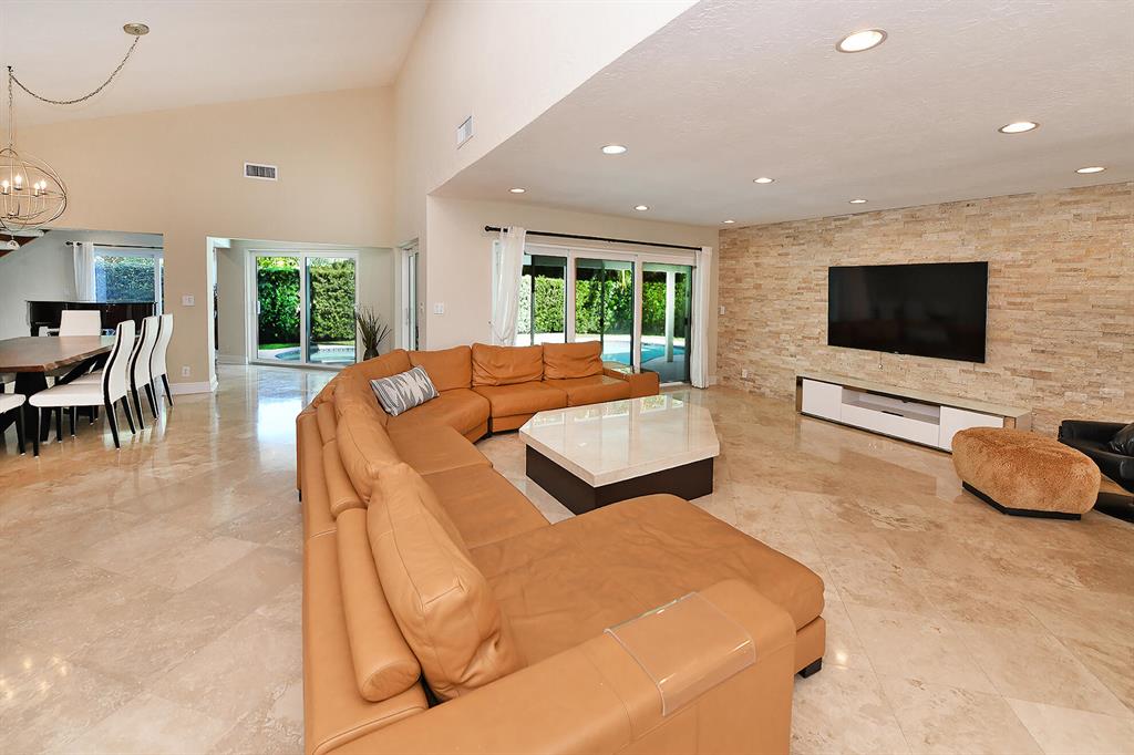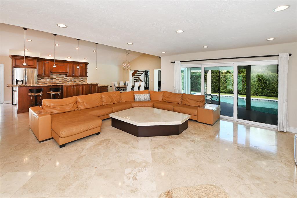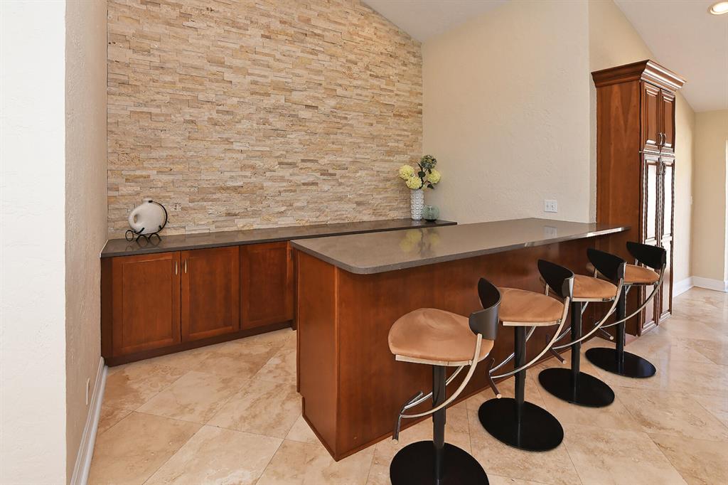 Stunning home in Pheasant Walk with awesome, custom features you will love. This 4br/3 bath home has just under 3,000 sf of living area. It has Saturnina marble flooring in all living areas. The gourmet kitchen is a chef's dream with custom cabinetry, 2 dishwashers, an island and plenty of room and cabinets. There is also an entertainment / bar area with stone back wall and wine refrigerator. The huge family / living room offers an abundance of space for entertaining or just relaxing. Just off the kitchen is the dining area that overlooks the pool and there is also a bonus area where the piano is located. The master bedroom is down and has a large, updated custom shower and bathroom with dual sinks. Bedrooms 2 and 3 are also on the main level with the guest bath having a combo tub/shower.