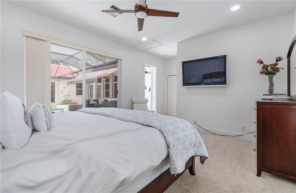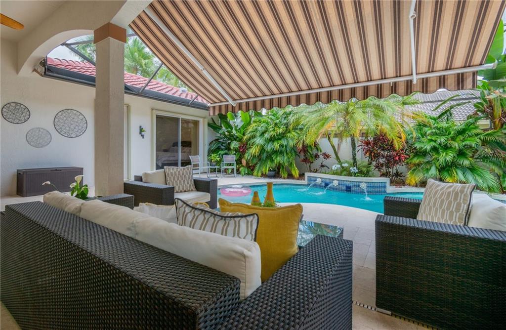 BACK ON THE MARKET! Stunning COURTYARD MODEL with free form pool, extensive tropical landscape, travertine pavers in patio and unlimited upgrades. NEW ROOF 2021. Main House offers 5 bedrooms & 3 full baths. Guest house w/one bedroom & full bath. Oversized master w/sitting area, large custom built walk-in closet & spa-like bathroom. The renovations are chic & sophisticated, all interior doors/frames/baseboards have been replaced, 42” textured kitchen cabinets, quartz countertops & island, SS appliances. Marble floors in Living areas & carpet in the bedrooms. Modern wood staircase. Renovated bathrooms in a transitional modern décor. The home is sun kissed with natural light from oversized windows. Laundry room. Private lot, 3 car garage + circular driveway & accordion shutters