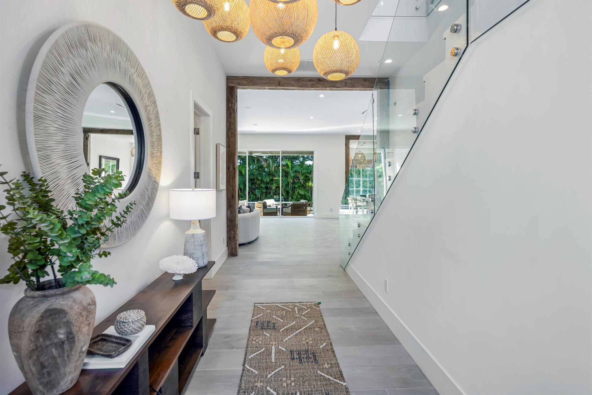 The classic architecture reveals 6 bedrooms, 7 bathrooms and 5,855 sqft of airy open-plan living spaces. Flow to the outside through expansive glass impact doors showcase the lush tropical landscape surrounding the resort-inspired pool. Infused with the casually elegance of coastal living, the interiors are grounded by sand-toned Italian porcelain tile floors with the look of wide-plank hardwood. Leading out to the loggia, sun splashed pool entertaining areas open from the gourmet island kitchen adjacent the family room and great room. Upstairs, five bedroom suites feature a grand master suite that exudes serenity in its own private wing, with luxurious marble bathroom bathed in natural light, and spacious loft, another fabulous entertaining space, opens to a balcony overlooking pool.