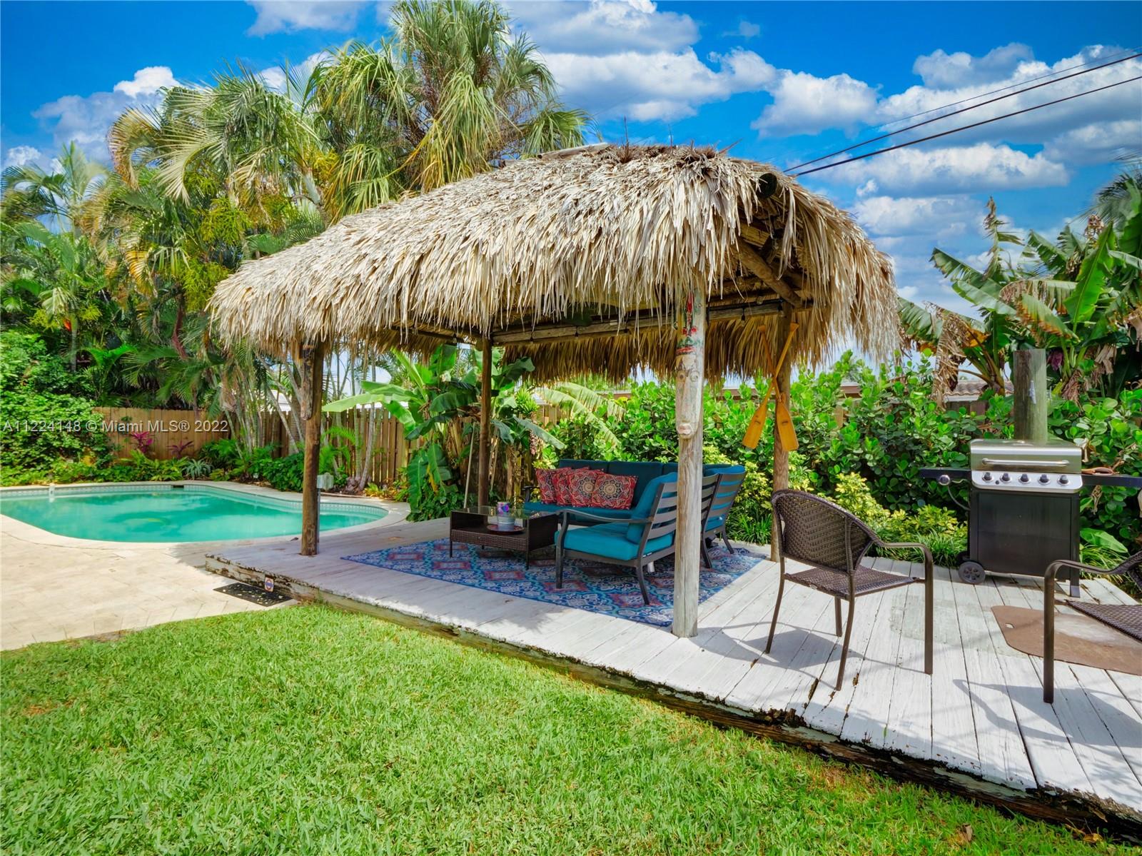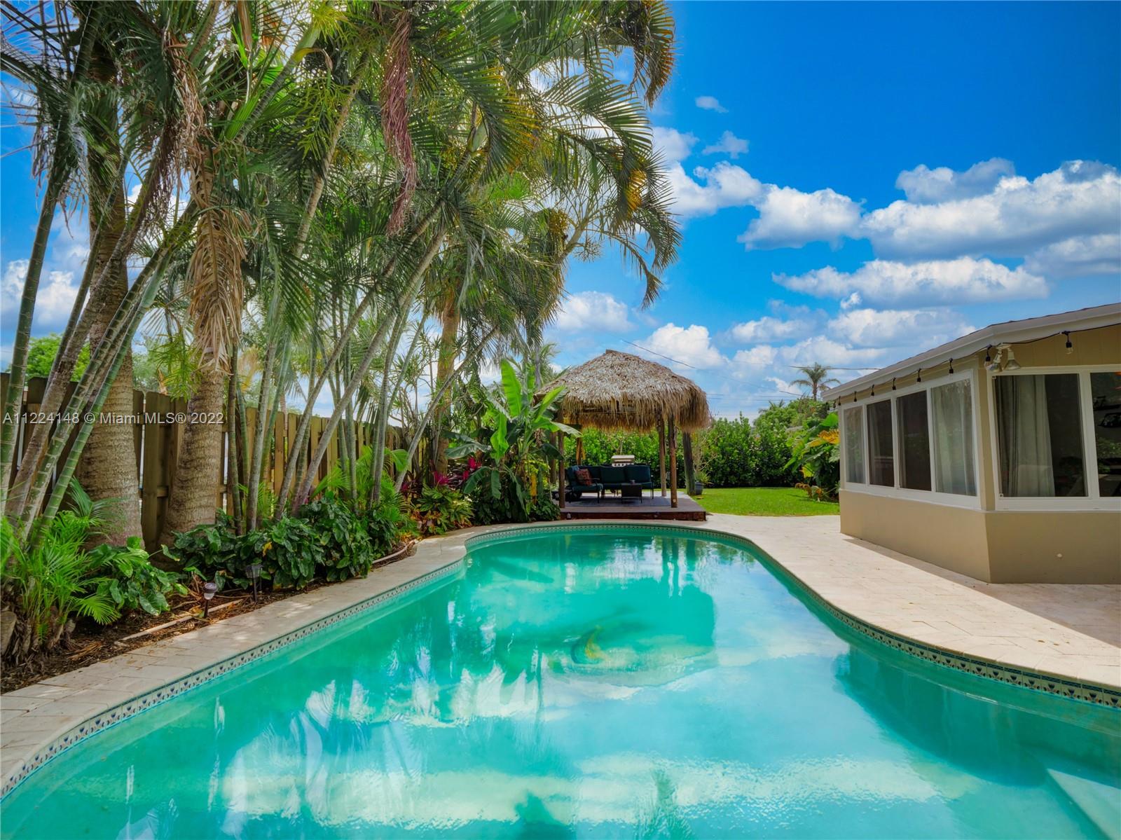 Tropical, Turn-Key Paradise Gem! 5-minute walk to the beach. Newer Ac, Impact windows and doors, New washer and dryer, upgraded plumbing (no cast iron) Relax and lounge in your outdoor with the extensive landscape, heated pool, bbq, and Tiki Hut. NO HOA. Operating as an AIRBNB with Fantastic Returns, the seller will transition the buyer into the new business, the buyer can keep the upcoming bookings or cancel as wished, and the buyer will have the ability to produce from day 1 after closing. Great price for a fast closing.
