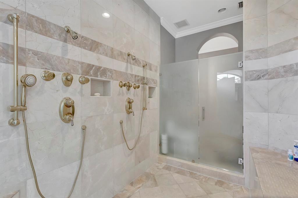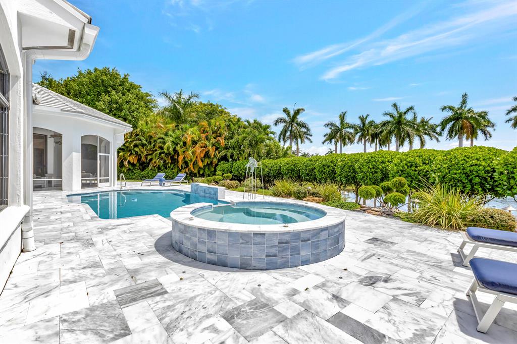 This Mediterranean style home is an architectural delight. Situated on a very private, pie-shaped lot at the end of a cul-de-sac. The expansive resort-stye pool area offers scenic views onto the lake, nestled between luscious palms trees with plenty of green space. 4 bedroom/2 office/6.5 bath, 2004 custom built home offers 5,520 sq. ft. ideally divided into separate wings; Master Bedroom wing, features an expansive master suite with his / her baths, overgenerous closets and intimate retreat off the bedroom; a great space for an office or private dressing room. The Guest wing offers 3 spacious ensuite bedrooms, all with beautifully appointed baths and walk-in closets w/ custom shelving. 3 of the homes bedrooms enjoy their own private patio courtyards, accessed by French doors (Roof 2020)