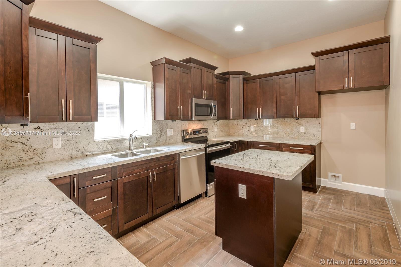 Spectacular 5 bedrooms, 3.5 bathrooms home in desirable West Park area . Built in 2019, the open floor plan includes a spacious kitchen, SS appliances, granite countertops, wood cabinets with pantry, and an amazing island in the middle of the kitchen. The Master bedroom features a high ceiling, and a huge walk-in closet, roman tub in master bathroom with a separate standing shower . All impact windows and doors. Beautiful ceramic tile and laminate floors throughout.