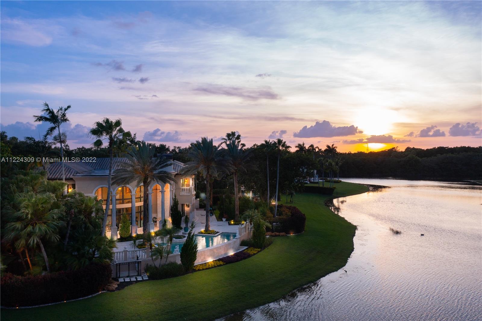 Gorgeous Italian Inspired Estate is now available for you! Hidden away on 1.7 acres and bordered by water on all sides. Marble and granite that are of a sturdy construction and can be found all around the home. The vast grand room has a glass wall that extends from the floor to the ceiling two stories high, guests will have a wonderful look at the waterfall pool that leads down to the extended lake vista. New Gourmet Kitchen equipped with top of the line appliances. A cutting edge Theater, Speakeasy Bar and Art Gallery! The estate also features two Fireplaces, Billiard Room; a Courtyard Entrance with a Koi Pond and Fountain; Putting Greens; Tennis Court; and Outdoor Kitchen. Hurricane impact and an automatic generator are also included. Truly one of a kind property you don't want to miss!