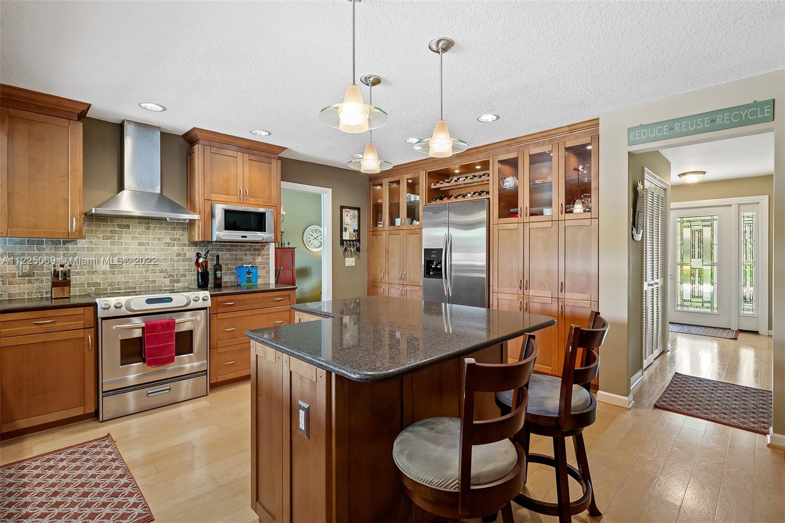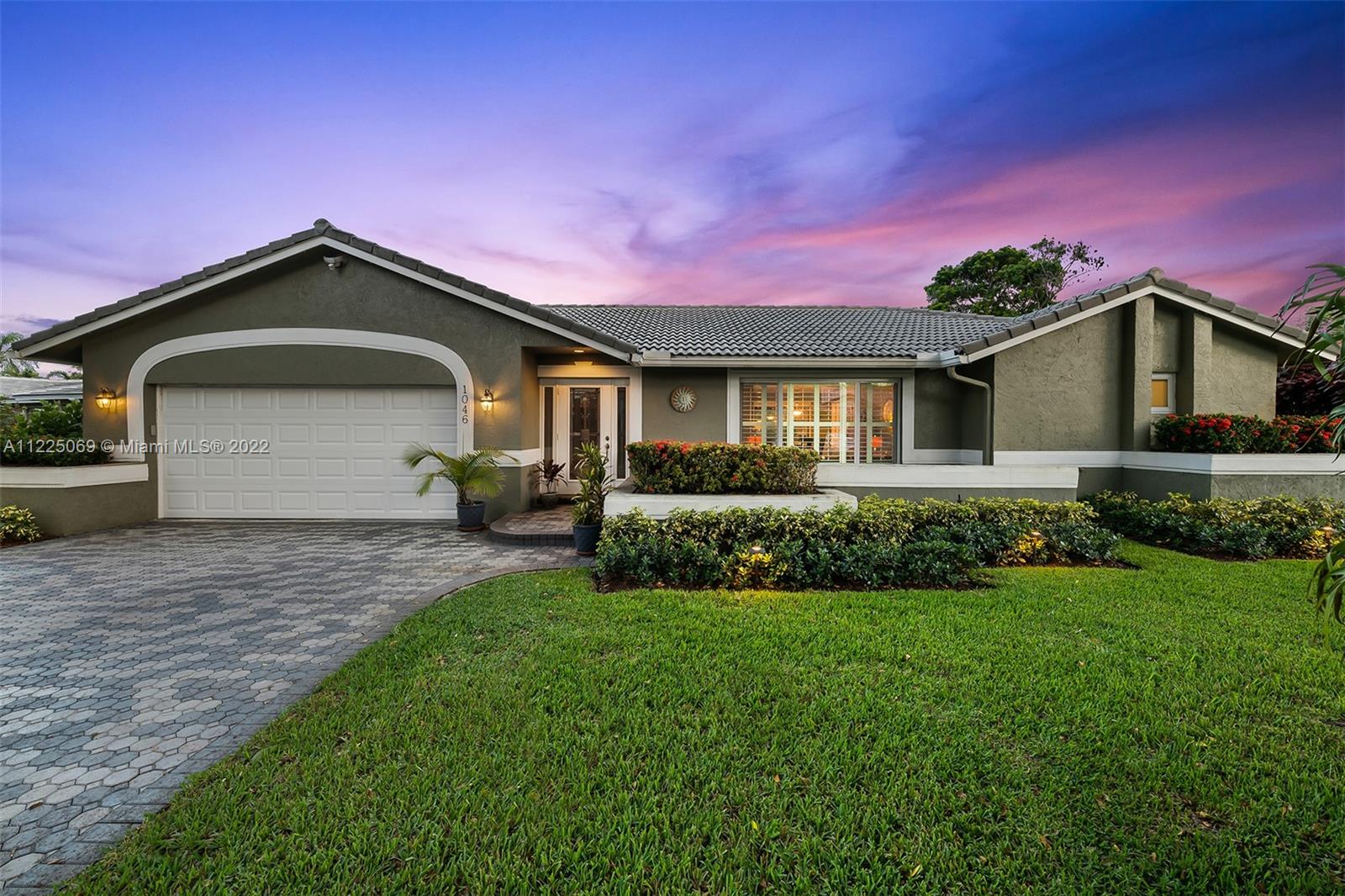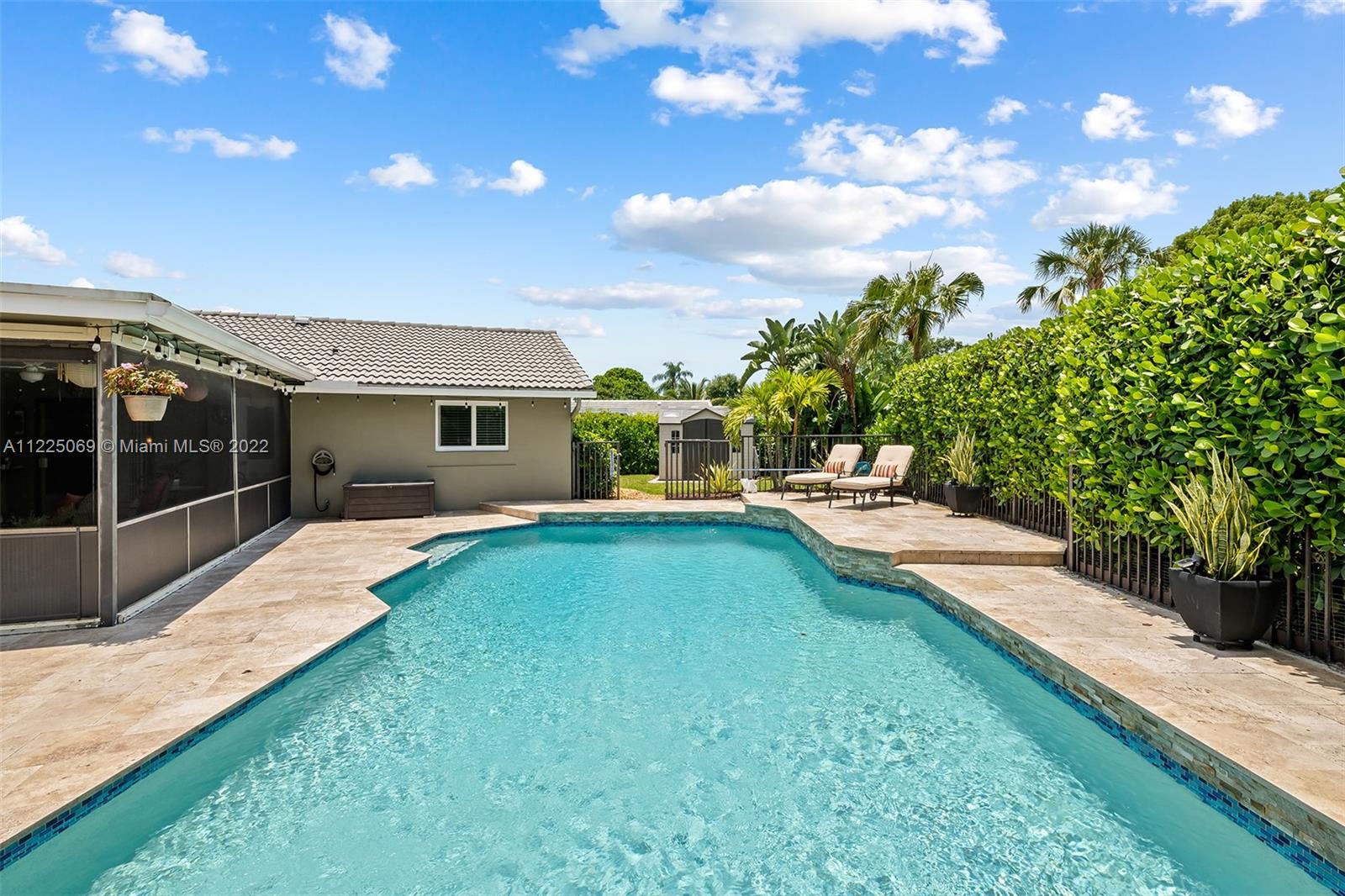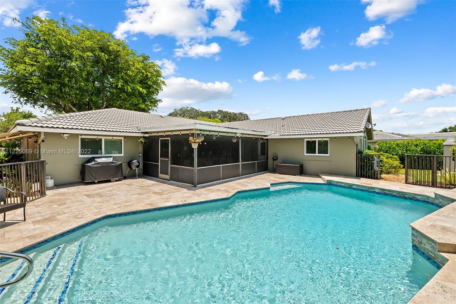 Welcome to 1046 NW 82nd Terrace in the desirable Ramblewood community. This beautifully maintained 5-bedroom, 2-bath, triple-split plan pool home sits on an oversized corner cul-de-sac lot. The manicured oasis features a private, fenced back yard, heated salt water pool, travertine pavers, a large screened lanai, and excellent landscape lighting. The sellers spared no expense on updating this home, from Kitchen Aid appliances to wood floors in living areas, recently redone baths (2018/2020), newer A/C (2018) and water heater (2016). Hurricane impact windows throughout except for patio sliders. Move-in condition with no HOA! Don’t miss the opportunity to call this one HOME!