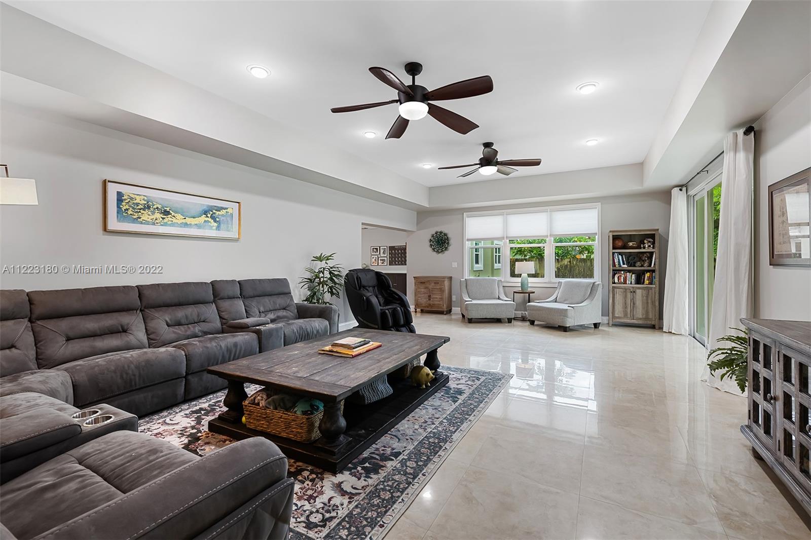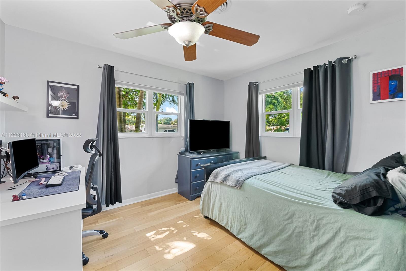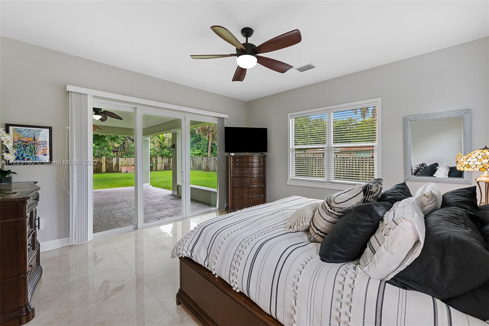 Lush landscaping and a freshly painted exterior welcomes you to a home that has everything: new roof in 2019, all impact windows, high-end security system, 10-foot ceilings, renovated kitchen with newer SS appliances & gas stove. The split floor plan features a spacious primary suite w/ built-in walk-in & bonus area for an office. The primary large bath has dual sinks, soaking tub, double shower & closet lavatory. The second bedroom has its own ensuite bath, perfect for older child or grandparent. A massive covered patio is perfect for entertaining, w/ room for a pool on the oversized yard. A 2-car garage has extra storage & laundry, w/ more storage in a large attic with stair access. No HOA,prime location in central Plantation, w/ easy access to parks,restaurants,shops & major highways.