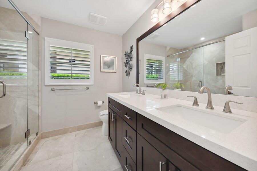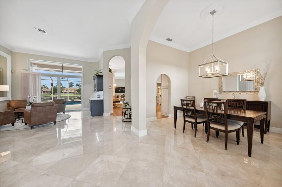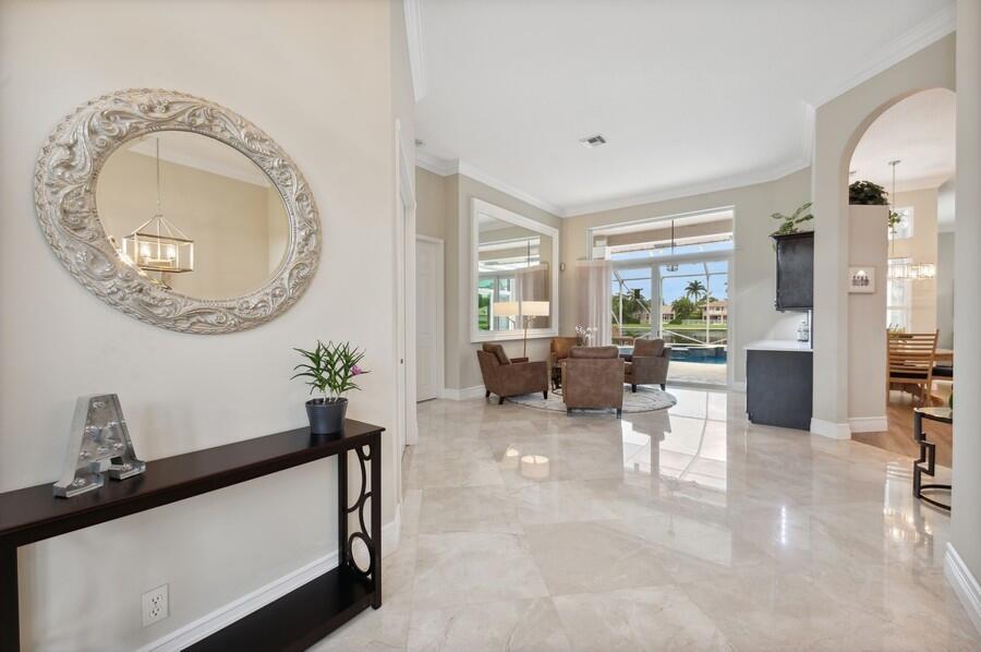 The ONE you waited for! Welcome to this like-new AMAZING lakefront one level, 3-way-split-plan pool home on .25 acres w/ 5BR/3BA/2CG in Boca Isles North! Breathtaking sunsets! Features:16 windows, 2 sliders, cabana, front & garage doors-ALL IMPACT, accordion shutters, marble flooring from Turkey, medallion inset @ foyer, wire brushed Bamboo wood flooring, plantation shutters, crown molding, bath 2 & 3-TOTAL Reno, custom bar in LR, 2 AC units & WH (2017), custom cabs in primary closets, roof-2010, gorgeous kitchen w/granite, Thermador triple combo wall oven & Danby wine fridge. Your outdoor paradise awaits w/a total update: elegant travertine paver deck, marble pool coping, resurfaced pool, raised spa, patio screens, Auto Pilot salt system & heat pump. Man-gated community & A-rated schools.